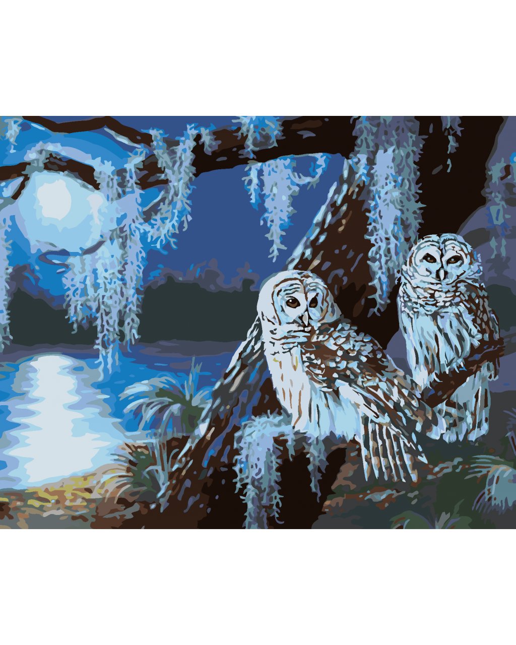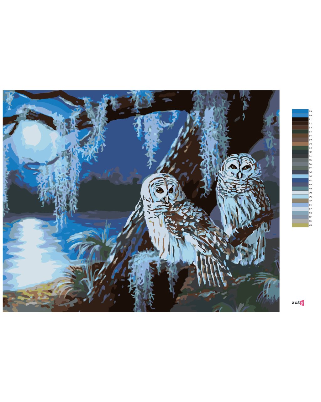 Maľovanie podľa čísel - SNEŽNÁ SOVA V NOCI PRI SPLNE (D. RUSTY RUST)