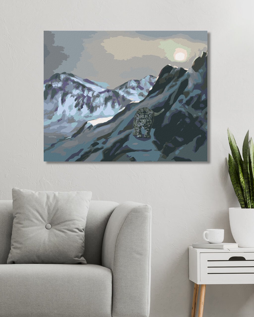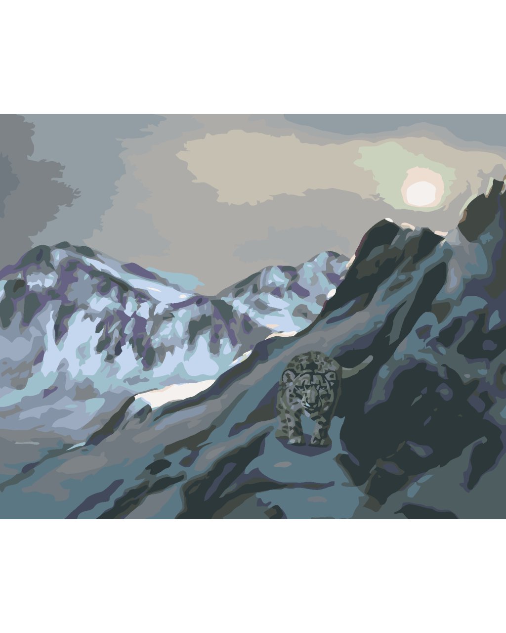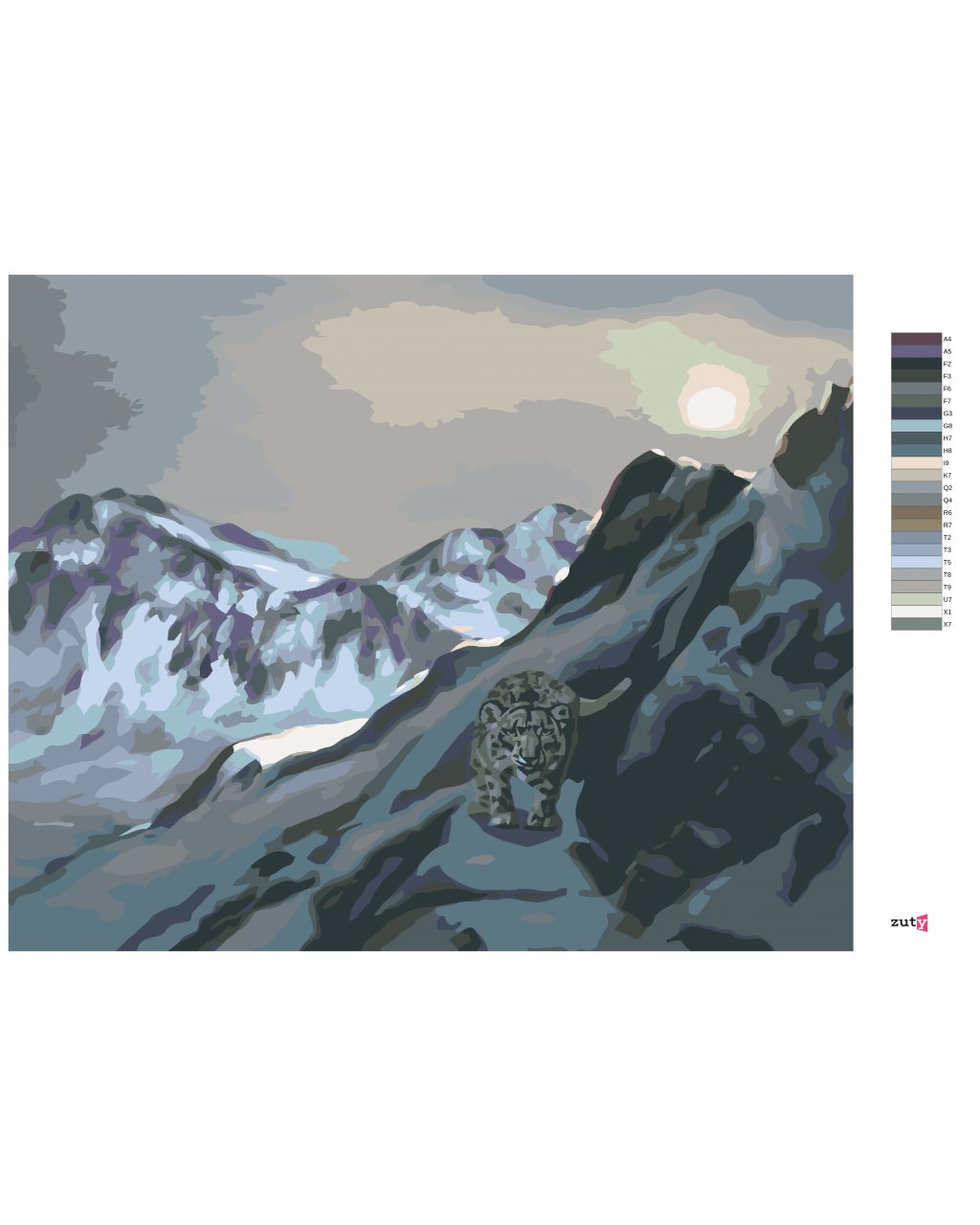 Maľovanie podľa čísel - SNEŽNÝ LEOPARD NA SKALE (D. RUSTY RUST)