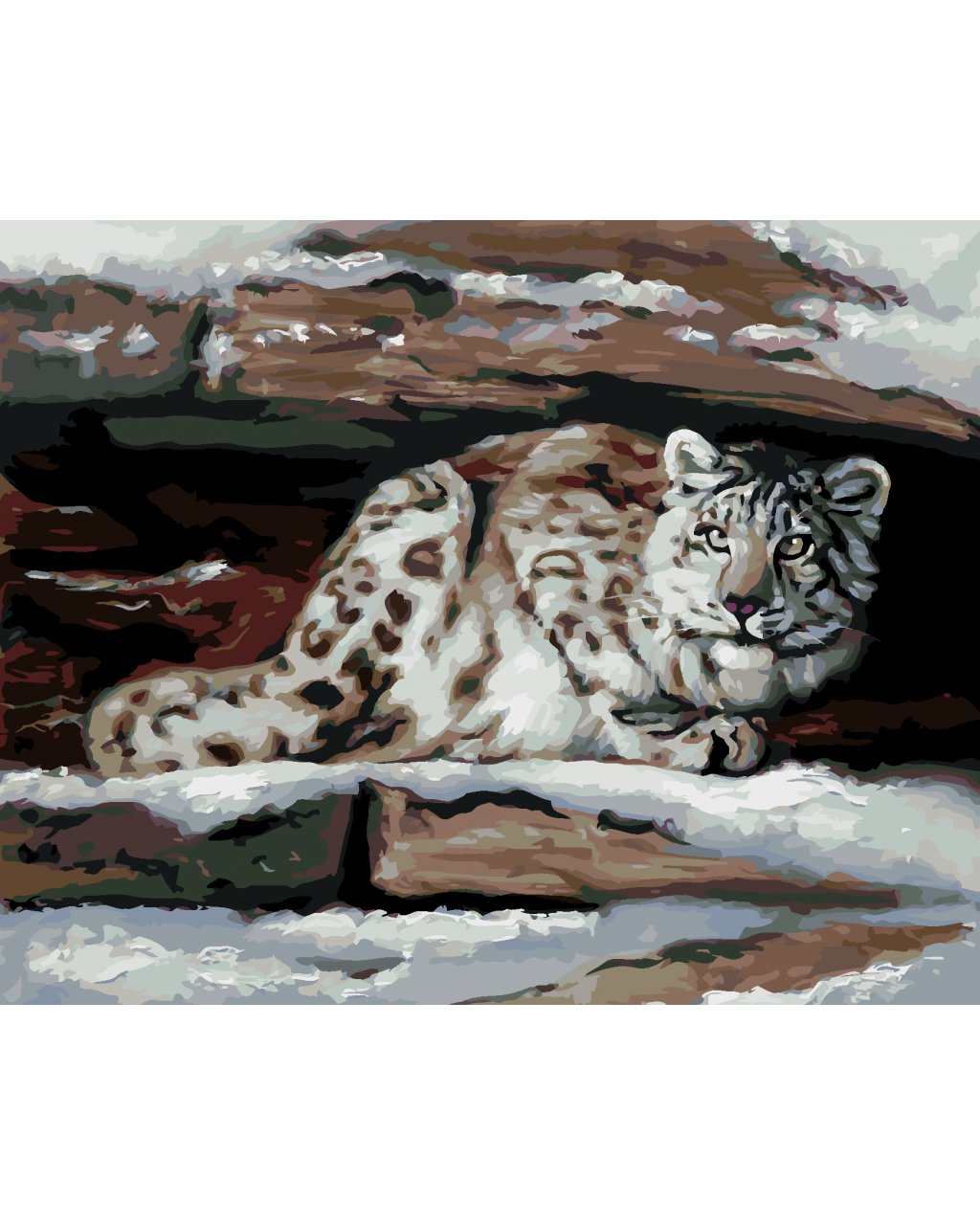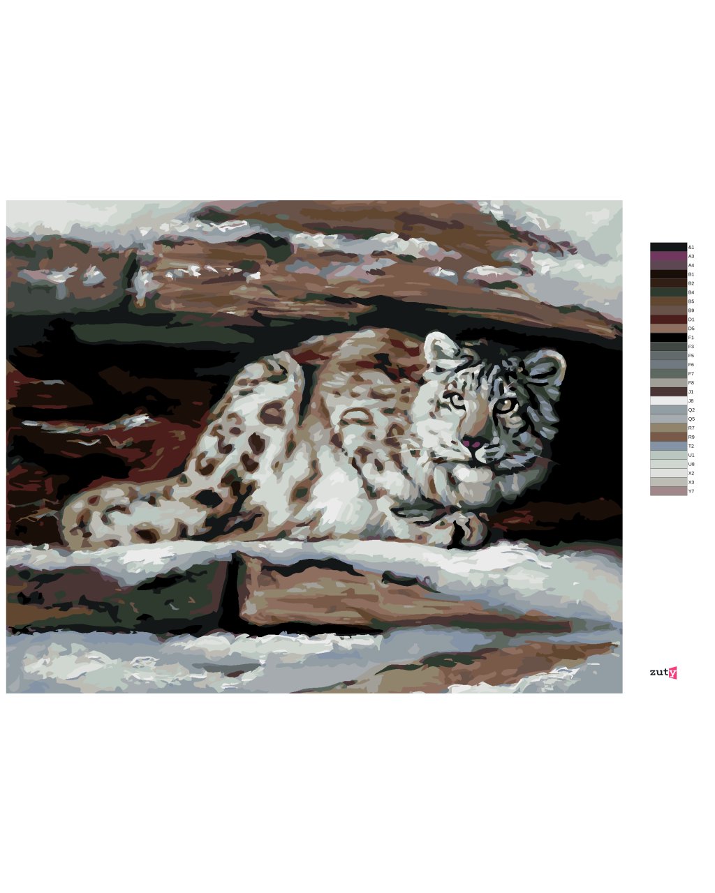 Maľovanie podľa čísel - SNEŽNÝ LEOPARD V ÚKRYTE (D. RUSTY RUST)