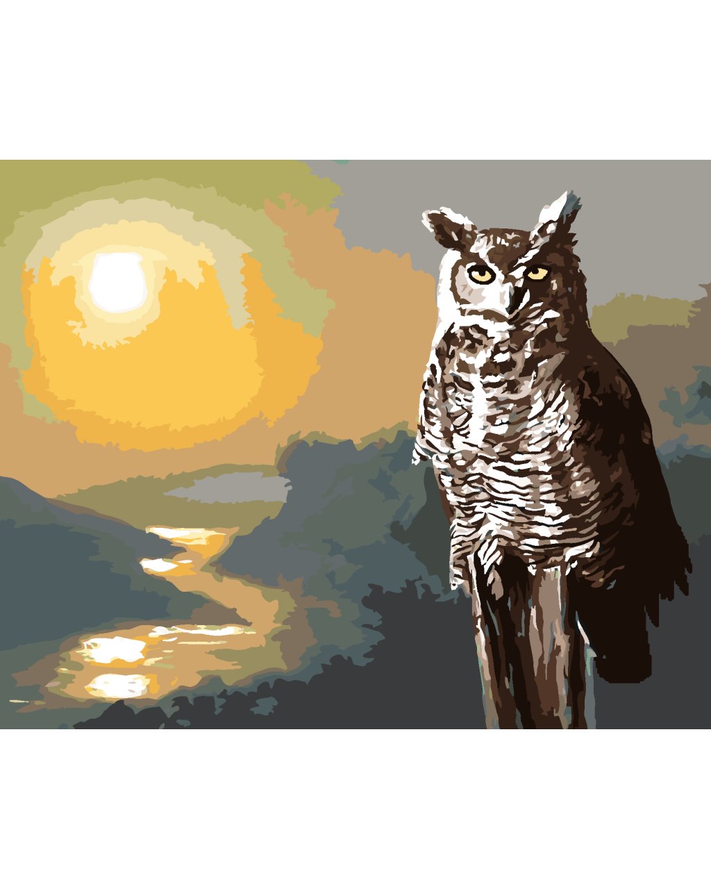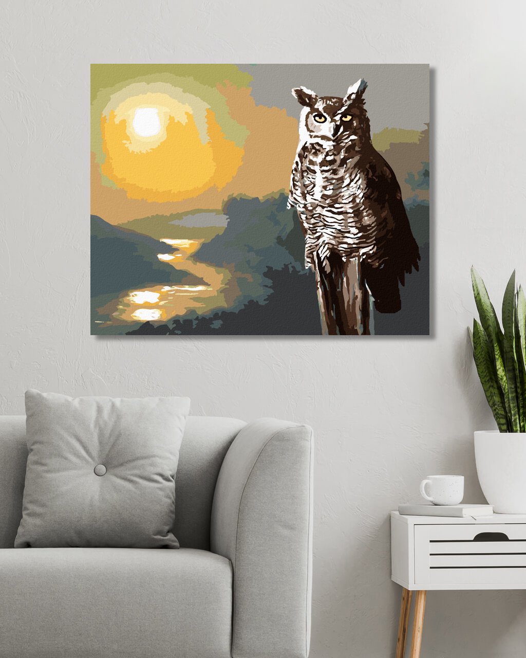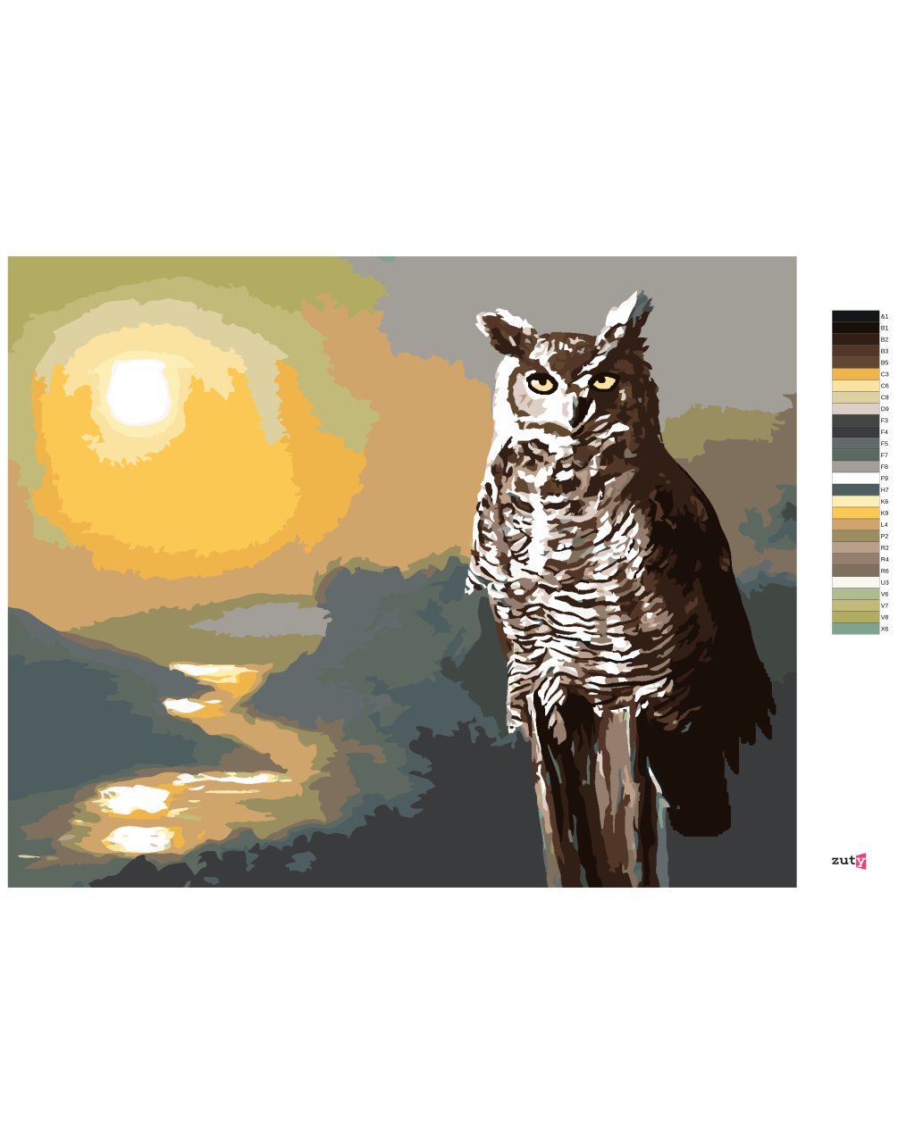 Maľovanie podľa čísel - SOVA, RIEKA A ZÁPAD SLNKA (D. RUSTY RUST)