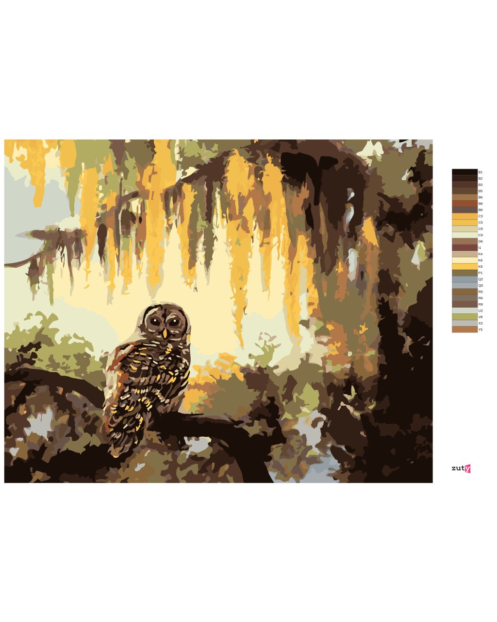Maľovanie podľa čísel - SOVA A STROMY (D. RUSTY RUST)