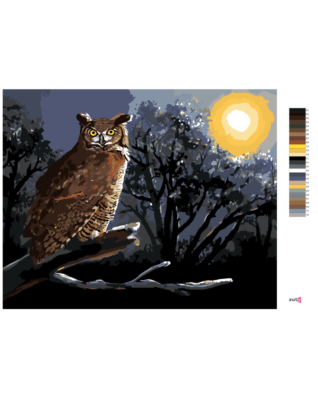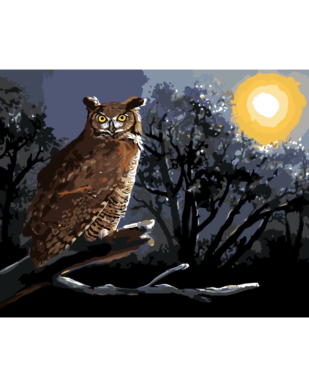 Maľovanie podľa čísel - SOVA SEDIACA NA KONÁRI V NOCI (D. RUSTY RUST)