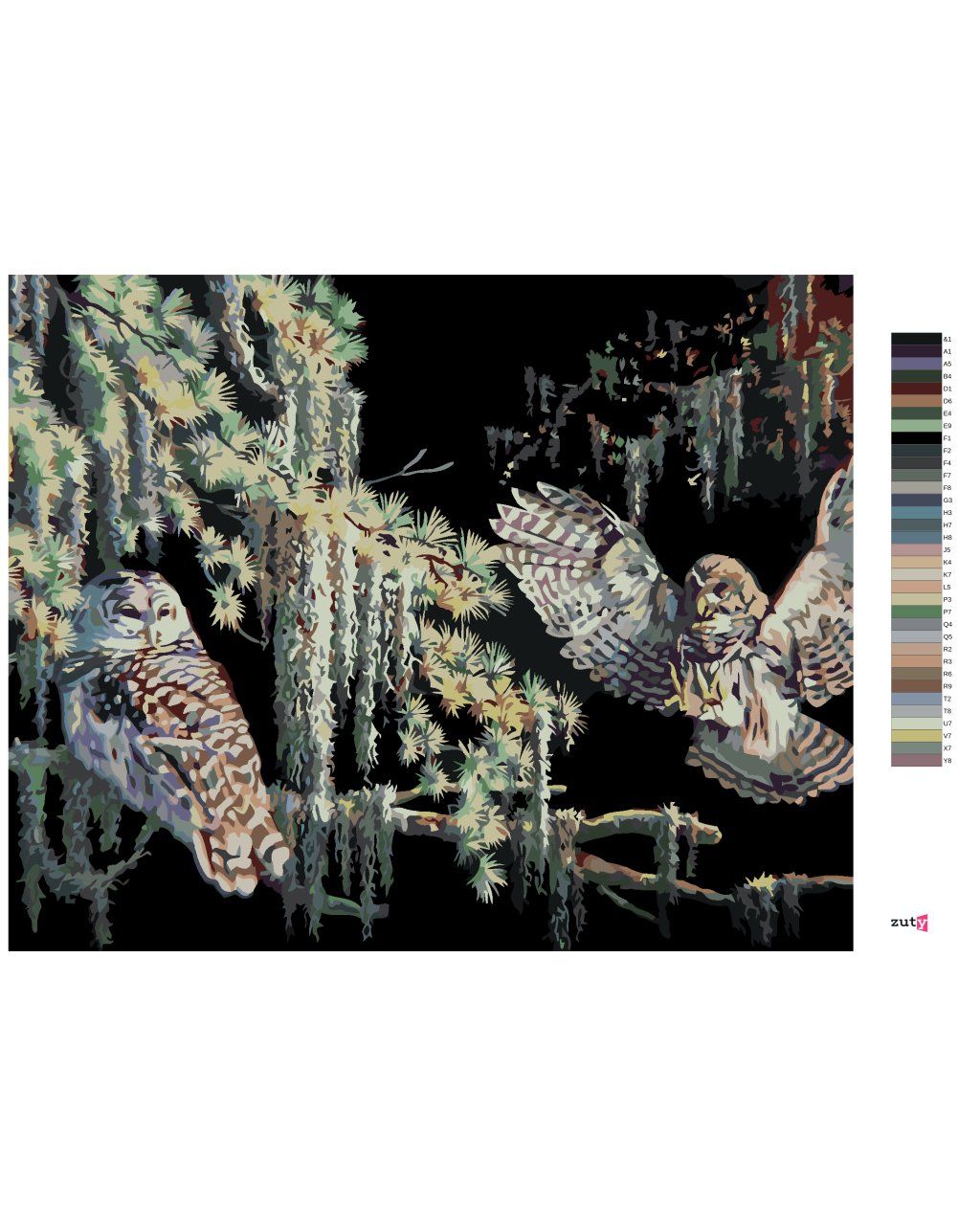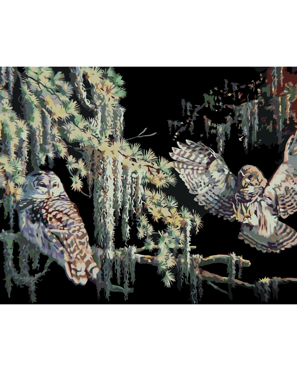 Maľovanie podľa čísel - SOVY V NOCI (D. RUSTY RUST)