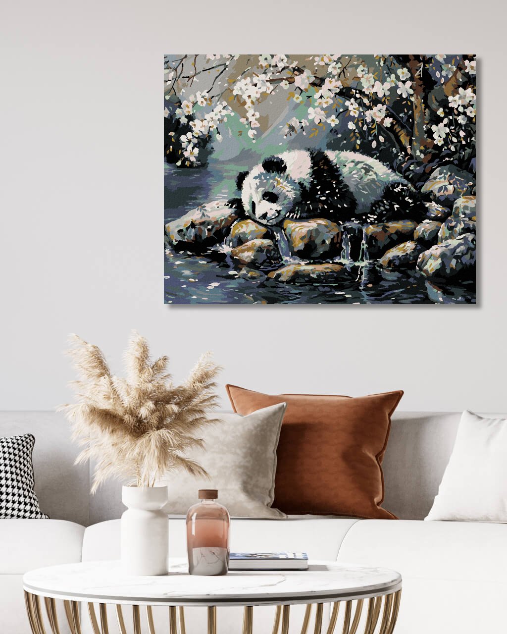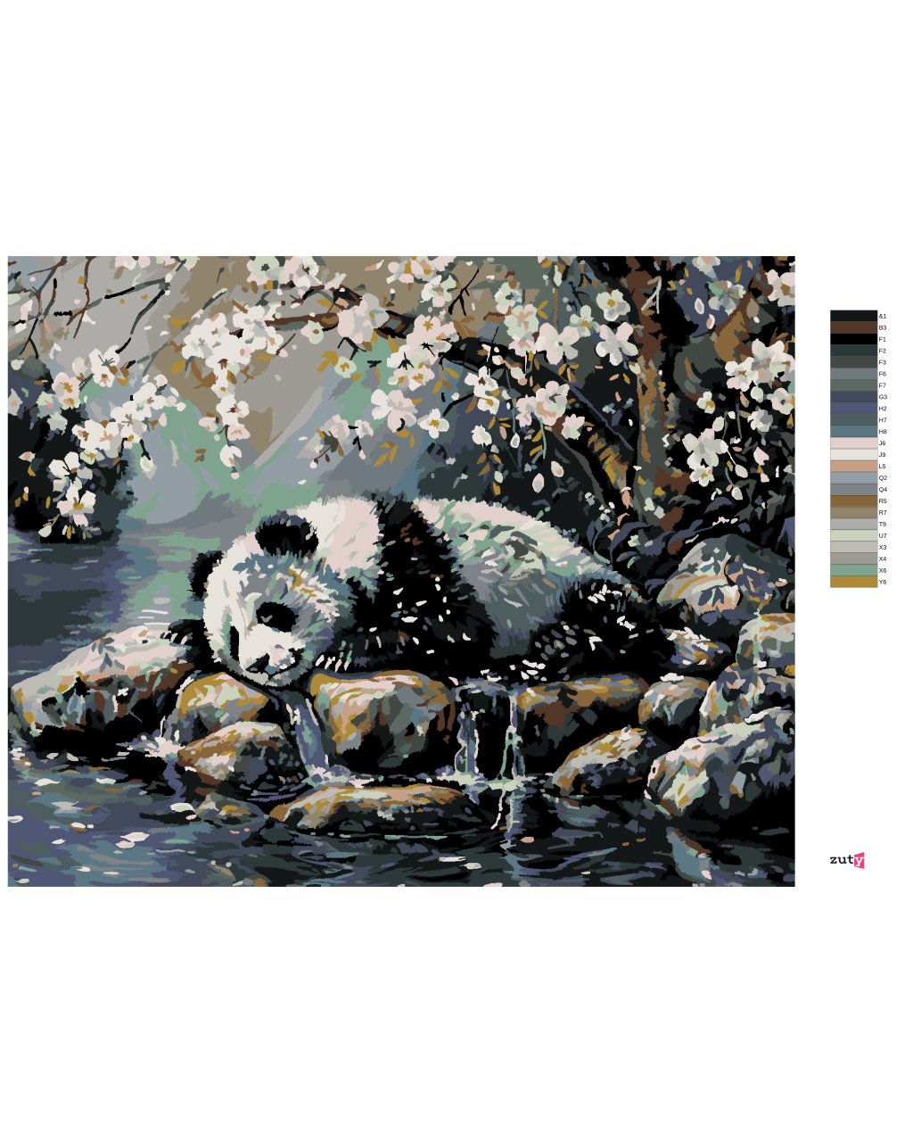 Maľovanie podľa čísel - SPIACA PANDA A ROZKVITNUTÝ STROM