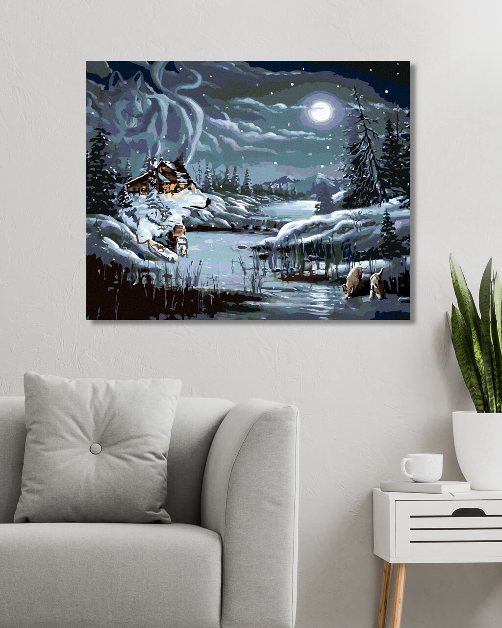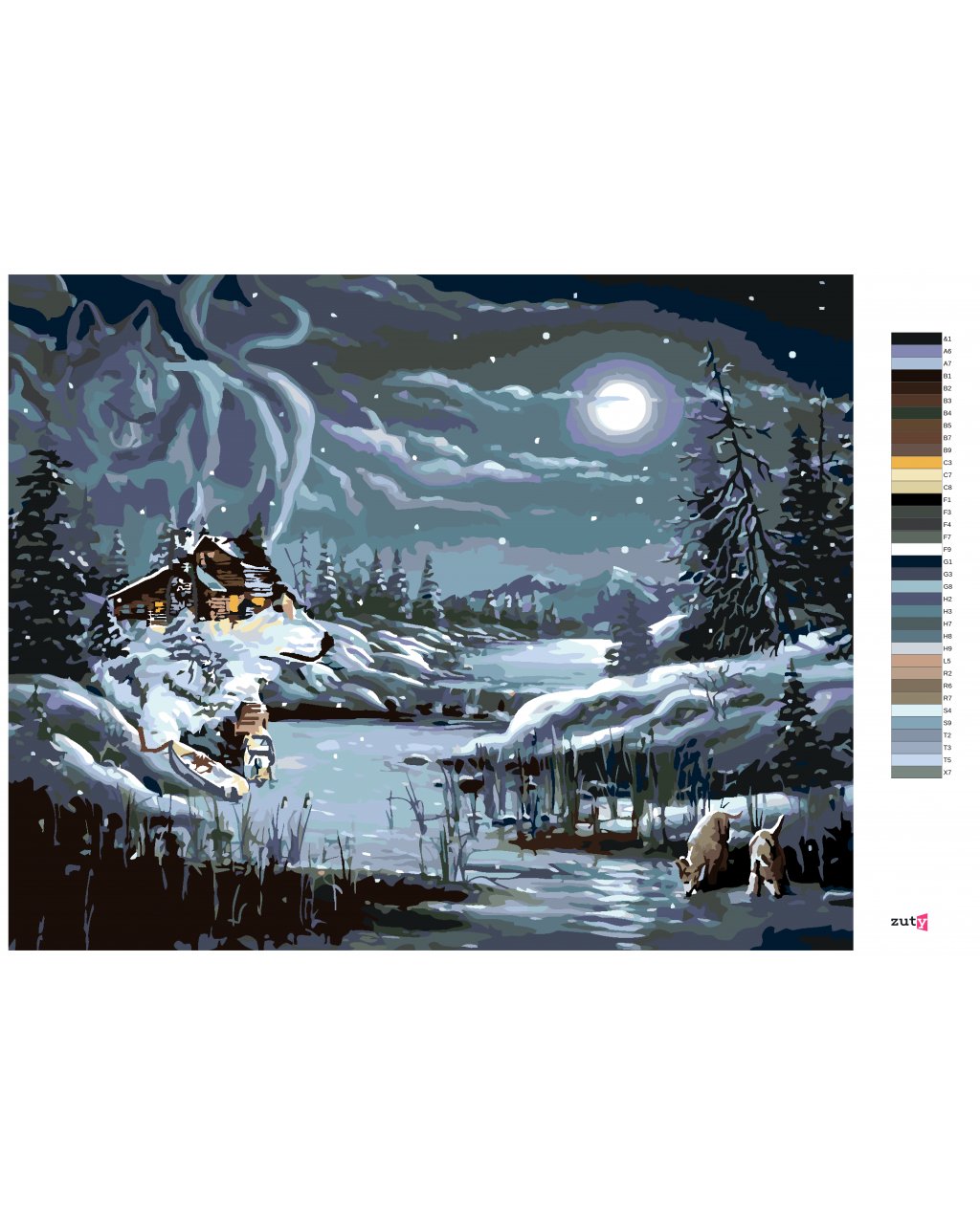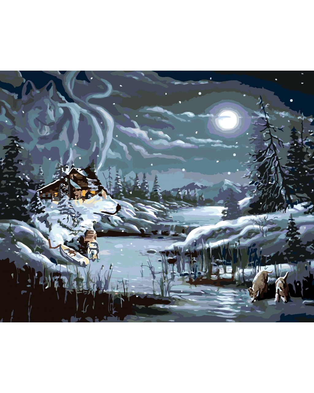 Maľovanie podľa čísel - SPLN, CHATA A VLK V ZIME (D. RUSTY RUST)