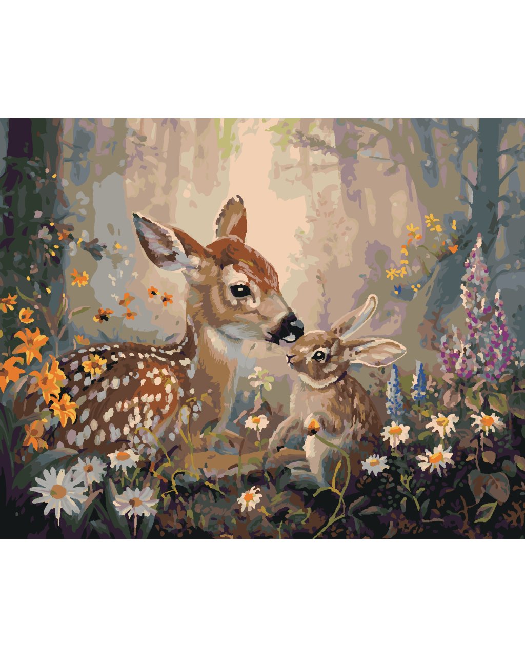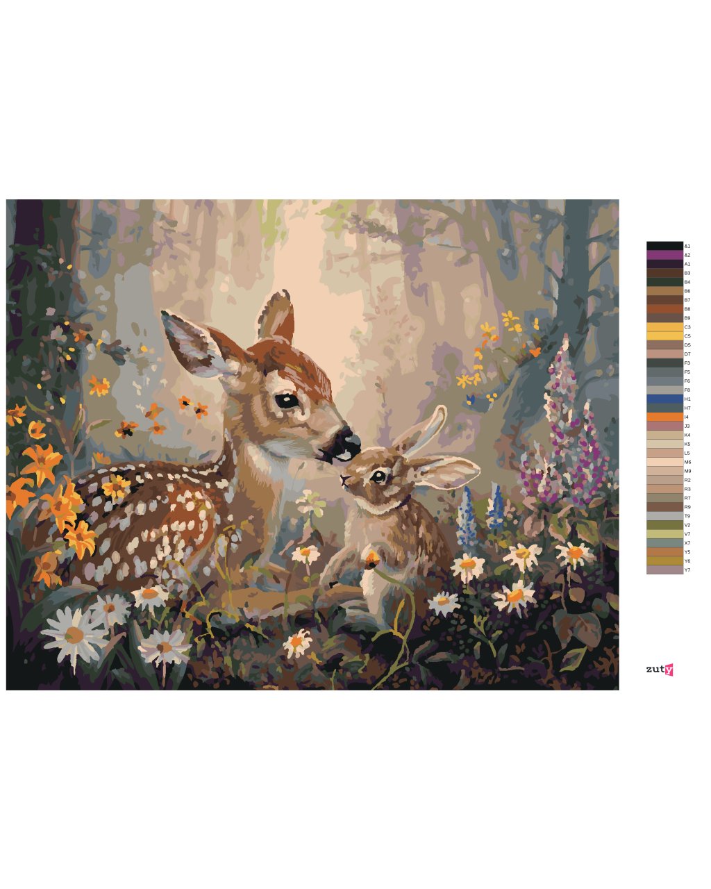 Maľovanie podľa čísel - SRNEC A KRÁLIK V KVETOCH