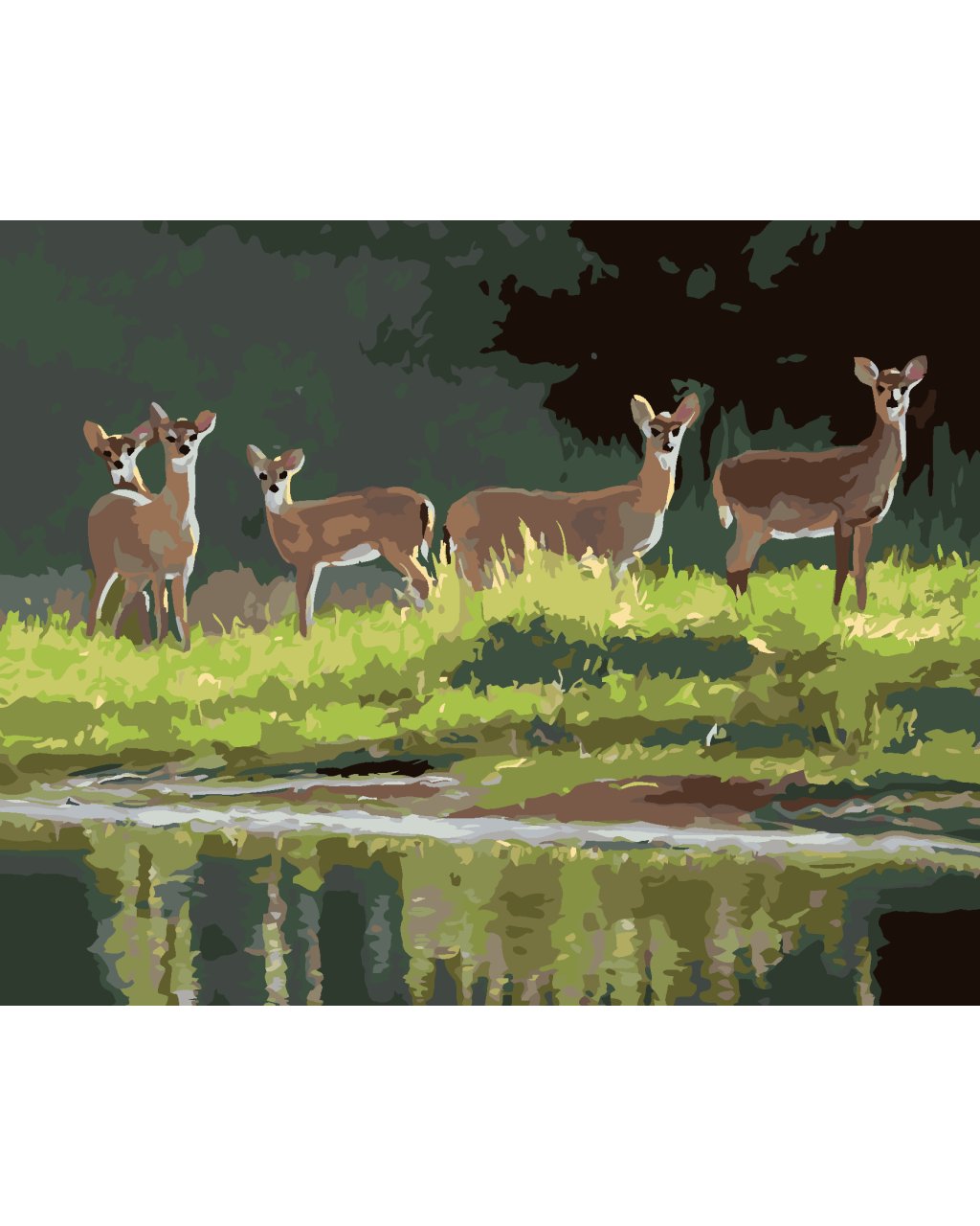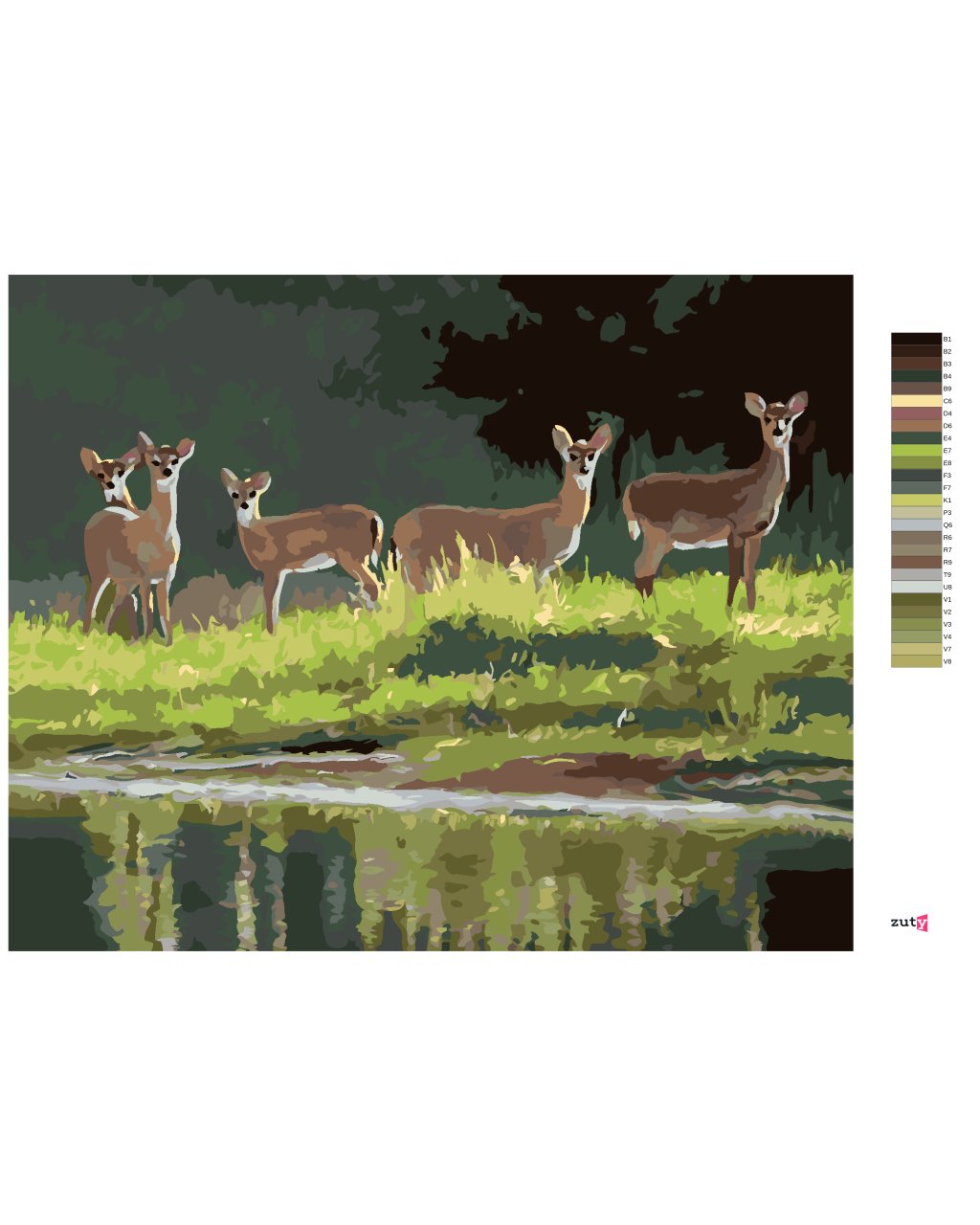 Maľovanie podľa čísel - SRNY PRI JAZERE (D. RUSTY RUST)