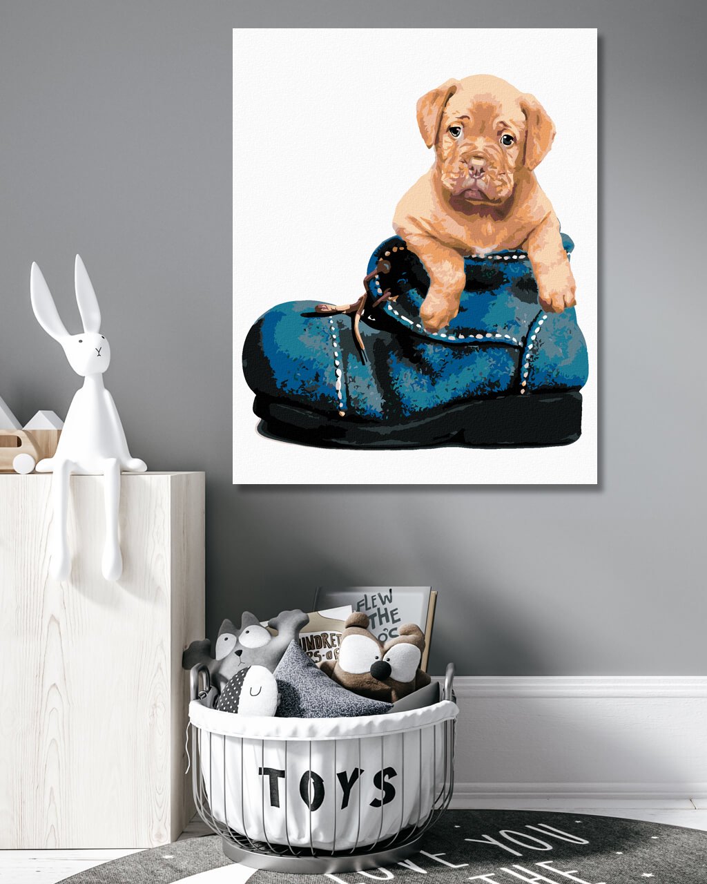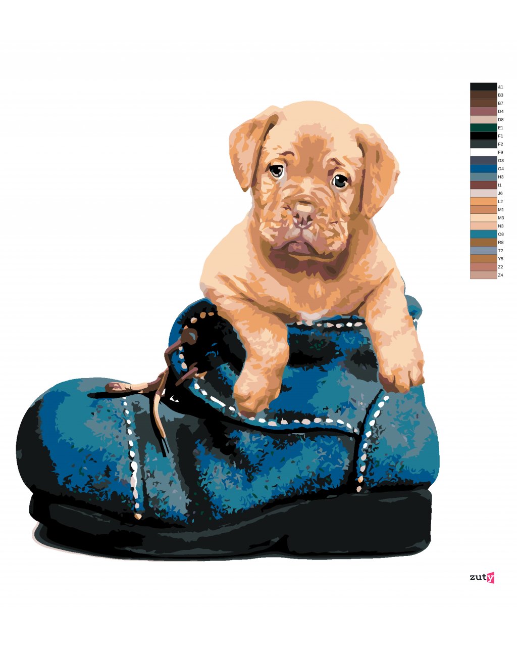 Maľovanie podľa čísel - ŠTENIATKO V TOPÁNKE