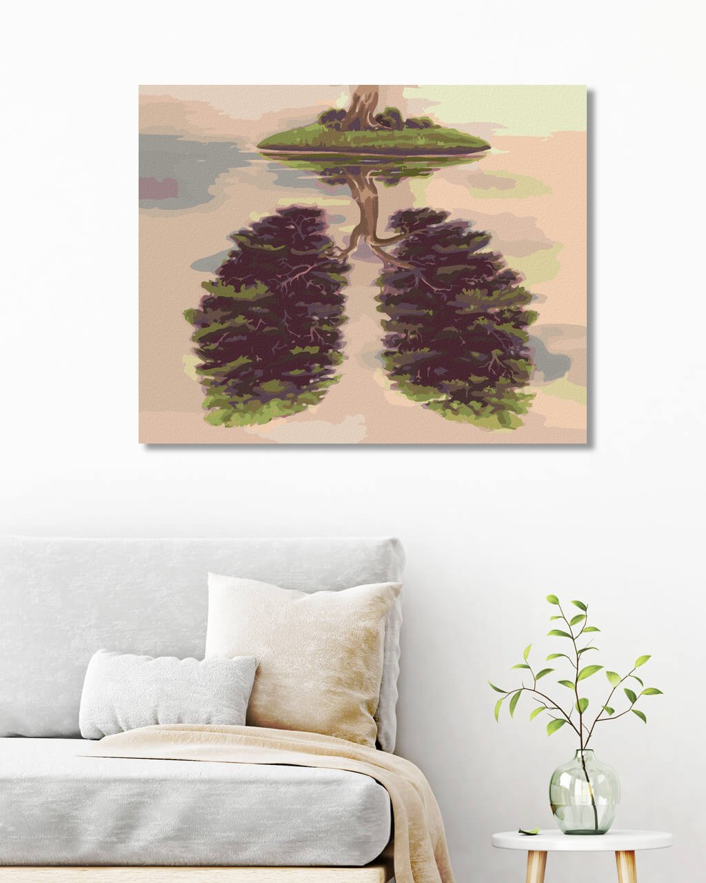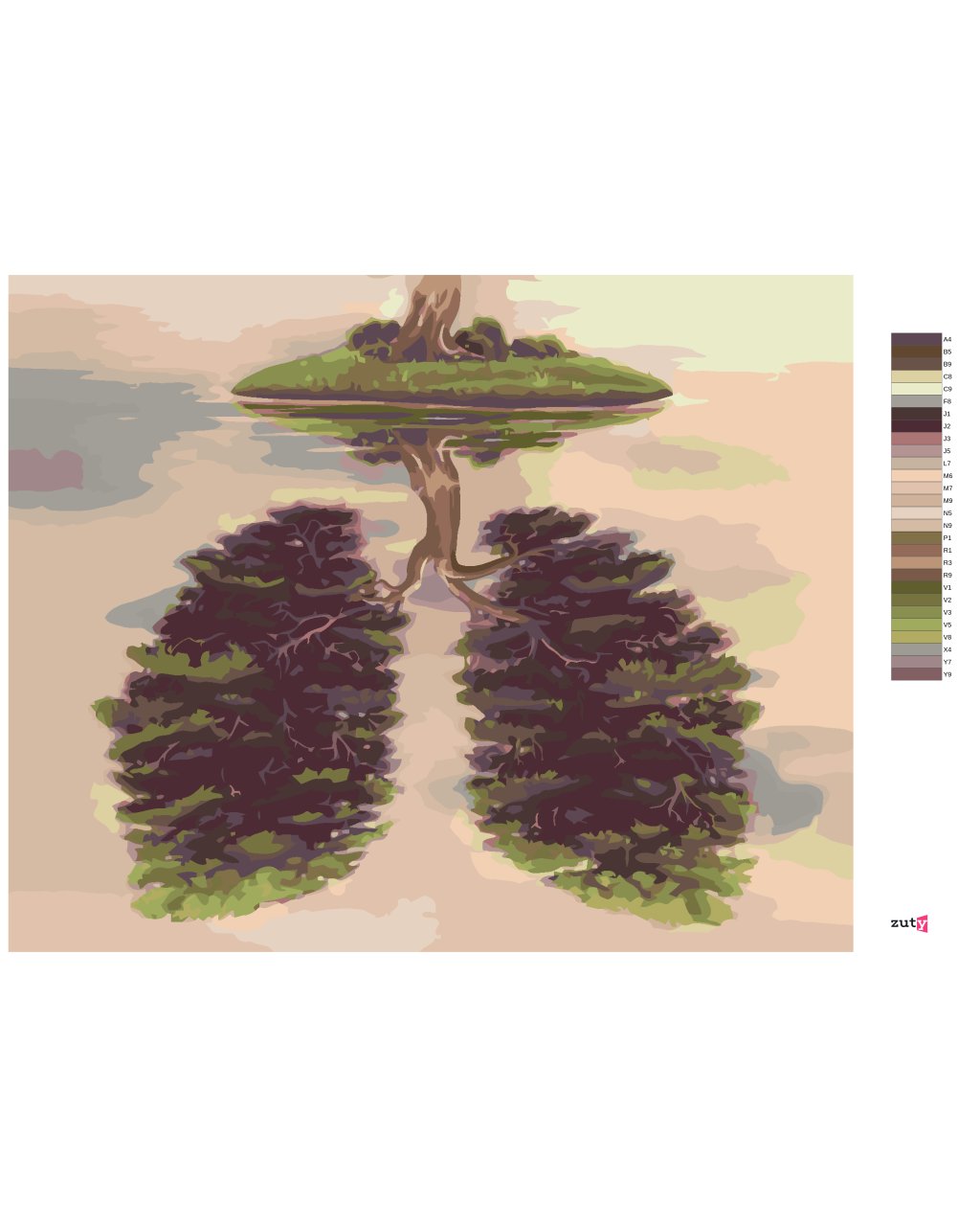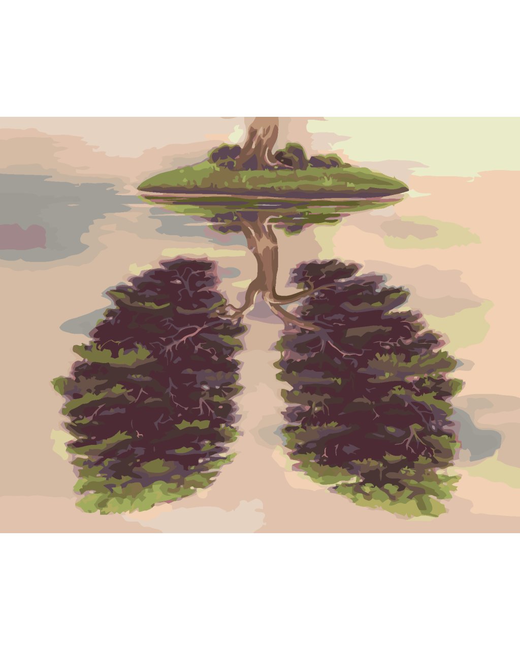 Maľovanie podľa čísel - STROM V TVARE PĽÚC NA OSTROVE