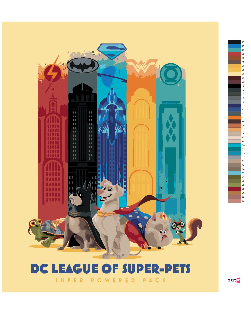 Maľovanie podľa čísel - SUPERMAZLIČKOVIA SUPER POWERED PACK (DC LIGA SUPERMAZLIČKOV)
