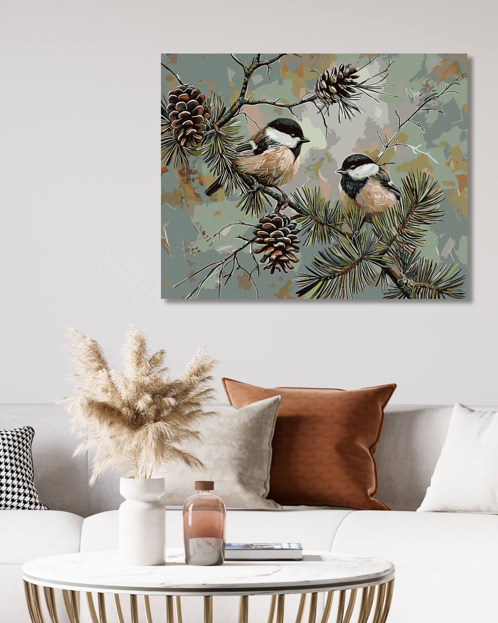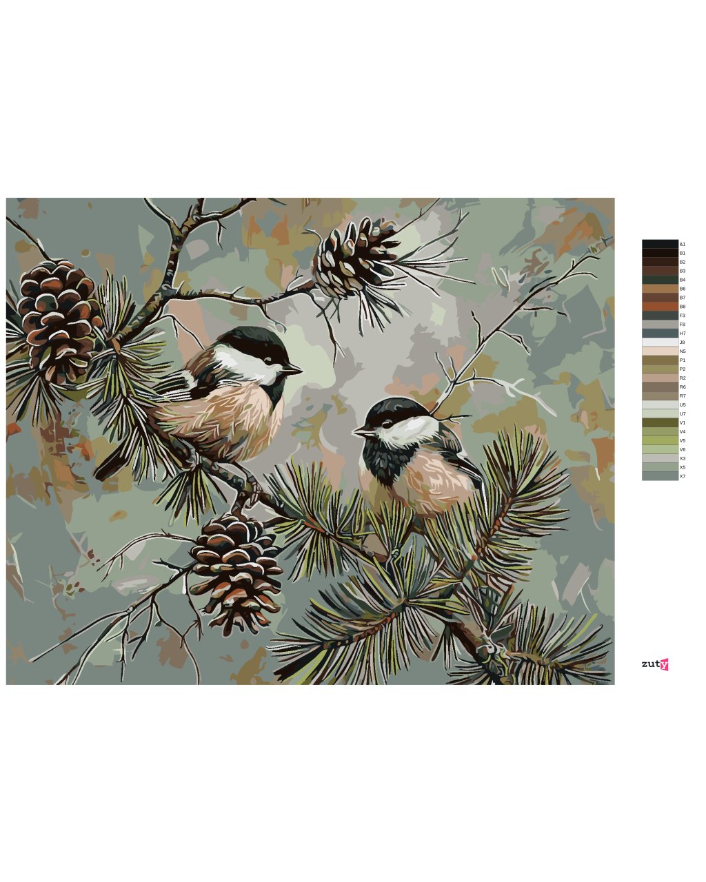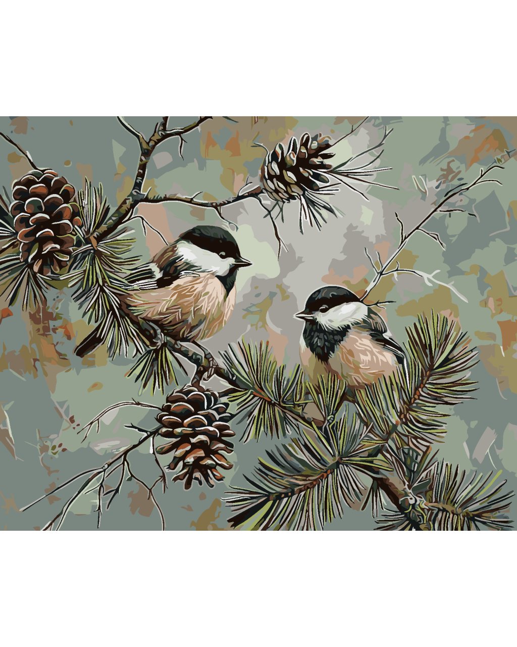 Maľovanie podľa čísel - SÝKORKA NA IHLIČNATOM KONÁRI