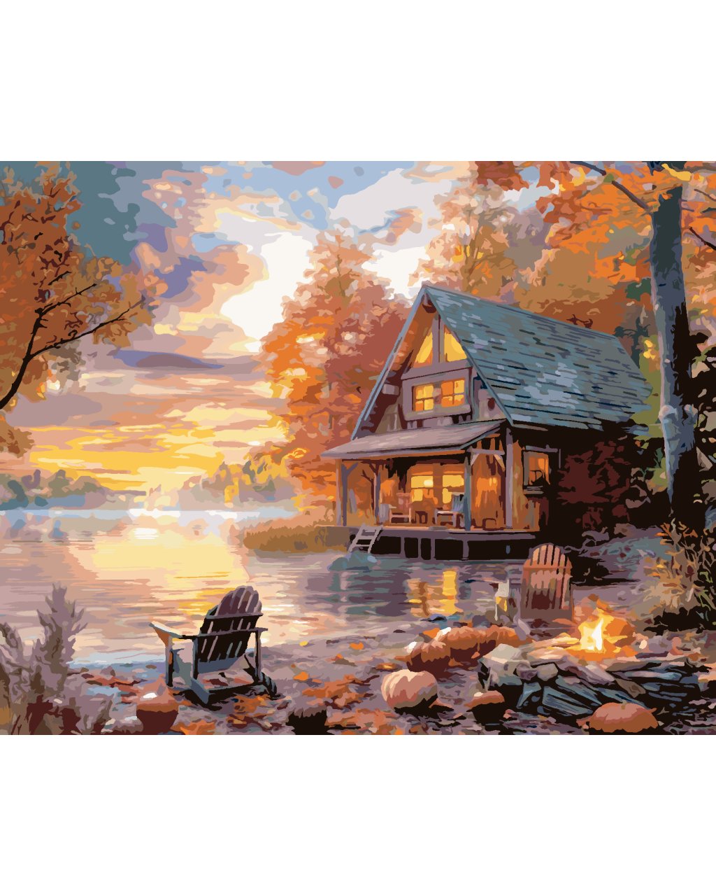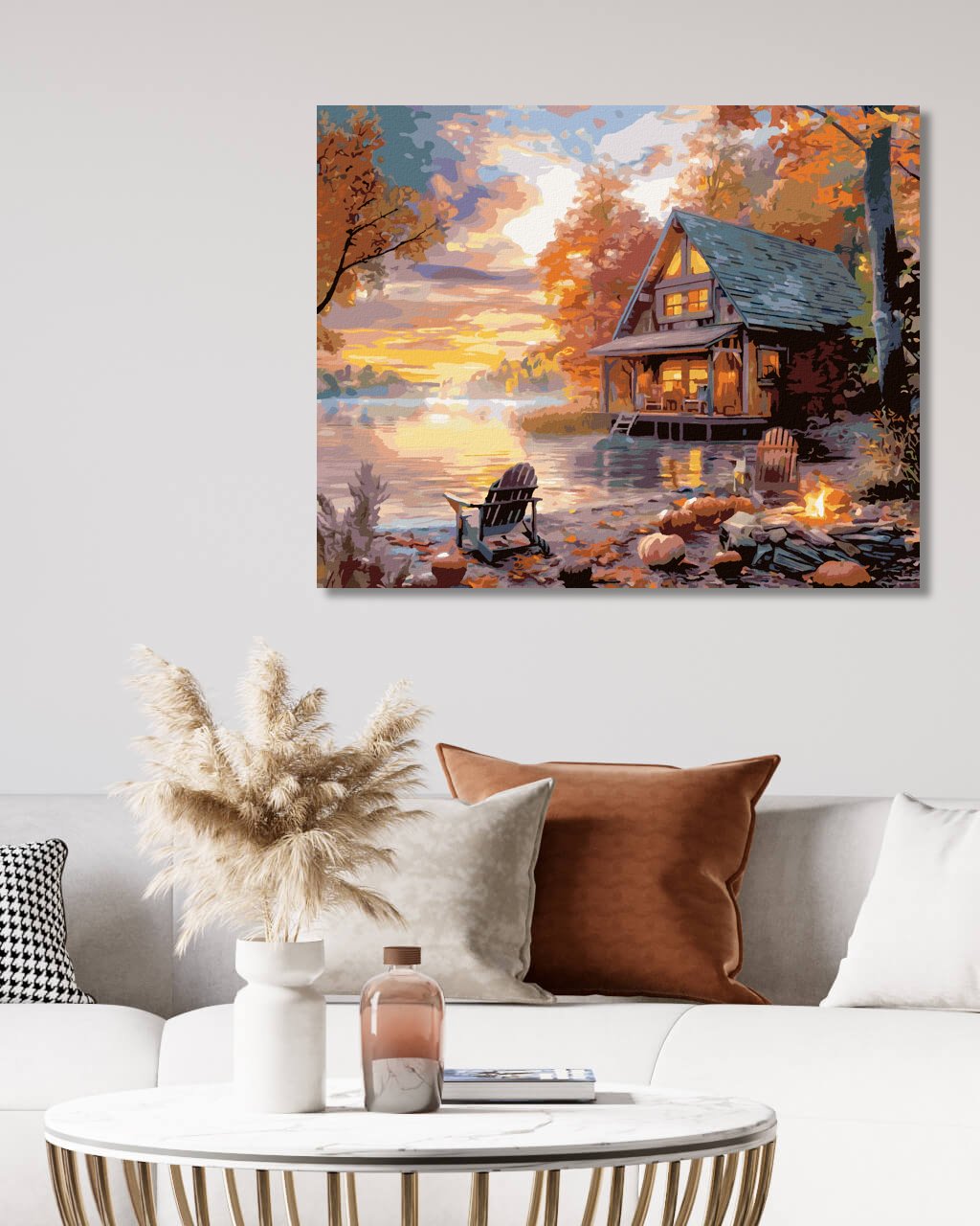 Maľovanie podľa čísel - TEKVICA, TÁBORÁK, KÁNOE PRI JAZERE A ZÁPAD SLNKA