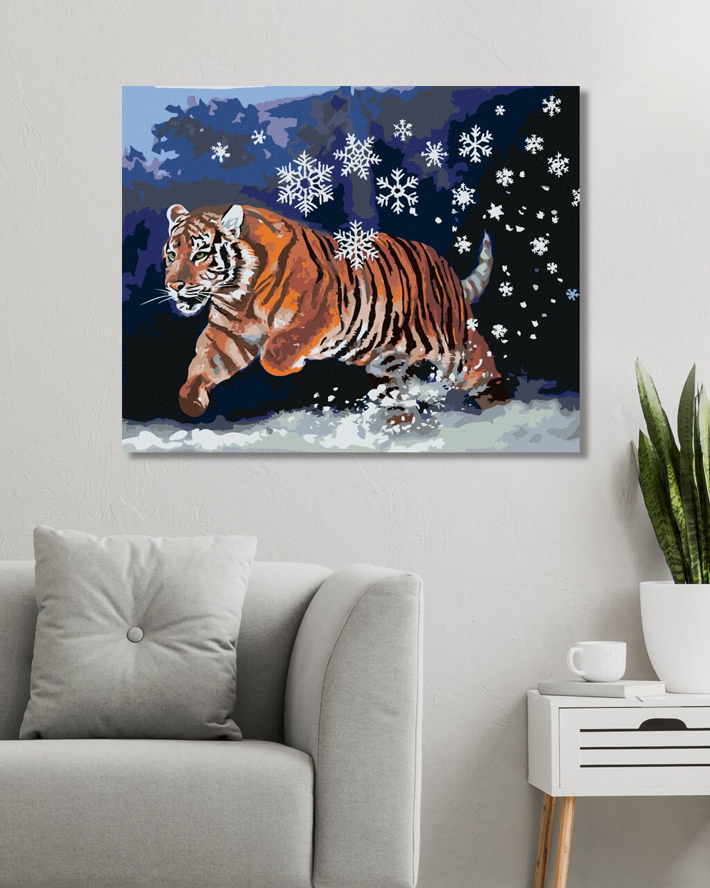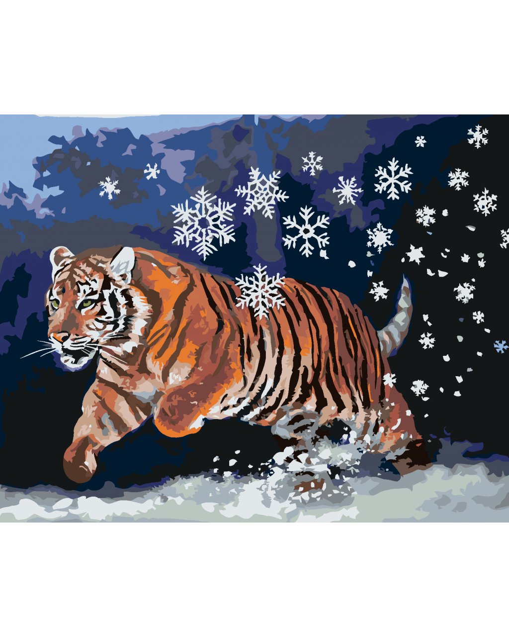 Maľovanie podľa čísel - TIGER A SNEHOVÉ VLOČKY (D. RUSTY RUST)