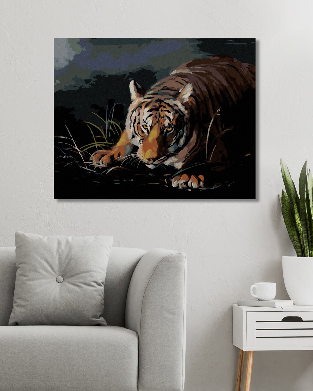 Maľovanie podľa čísel - TIGER ČÍHAJÚCI V TME (D. RUSTY RUST)
