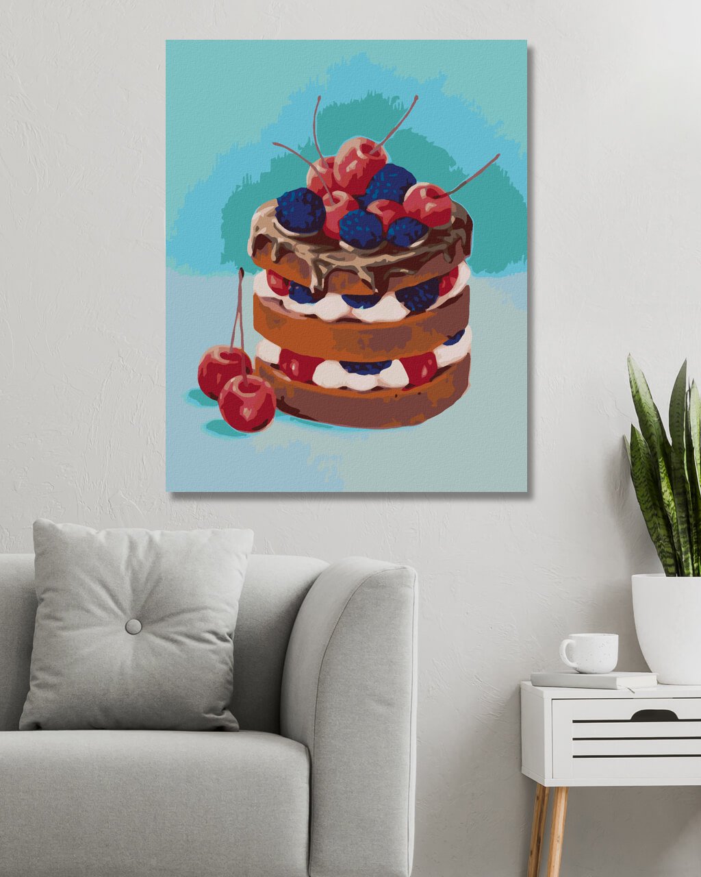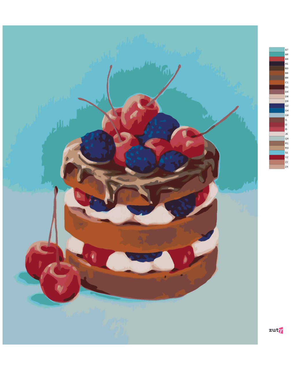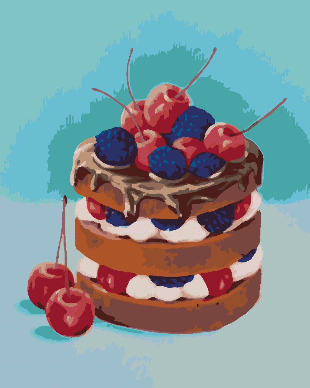 Maľovanie podľa čísel - TORTA S ČOKOLÁDOU A OVOCÍM (MYROSLAVA VOLOSCHUK)