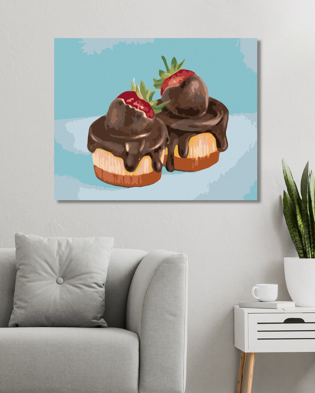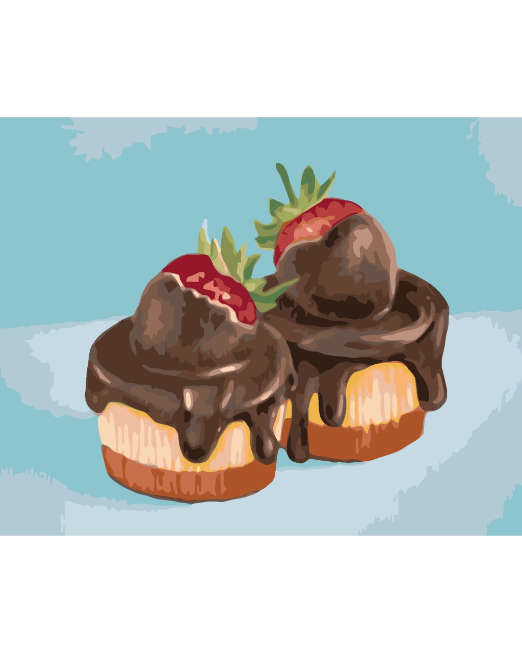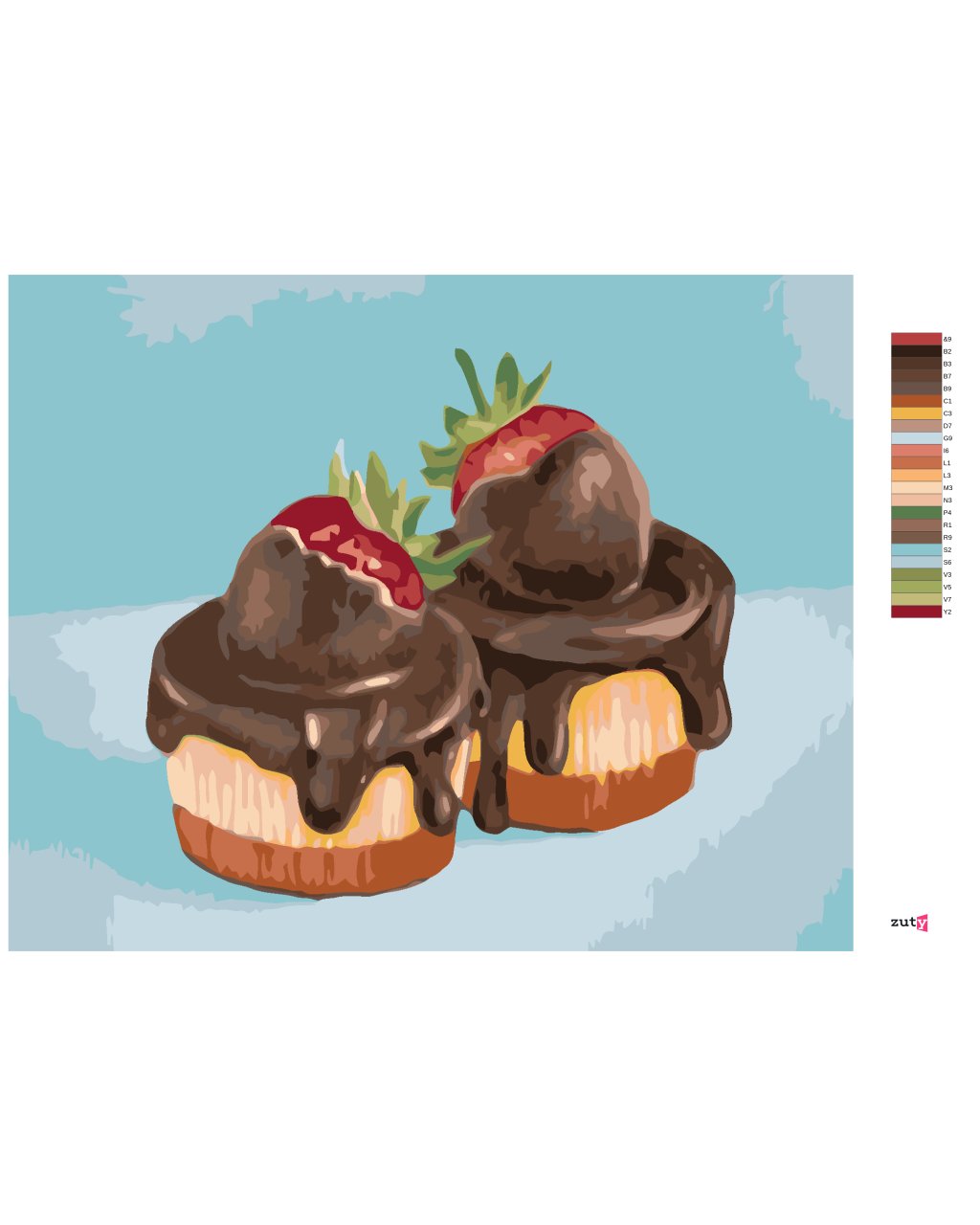Maľovanie podľa čísel - TORTA S JAHODOU A ČOKOLÁDOVOU POLEVOU (MYROSLAVA VOLOSCHUK)