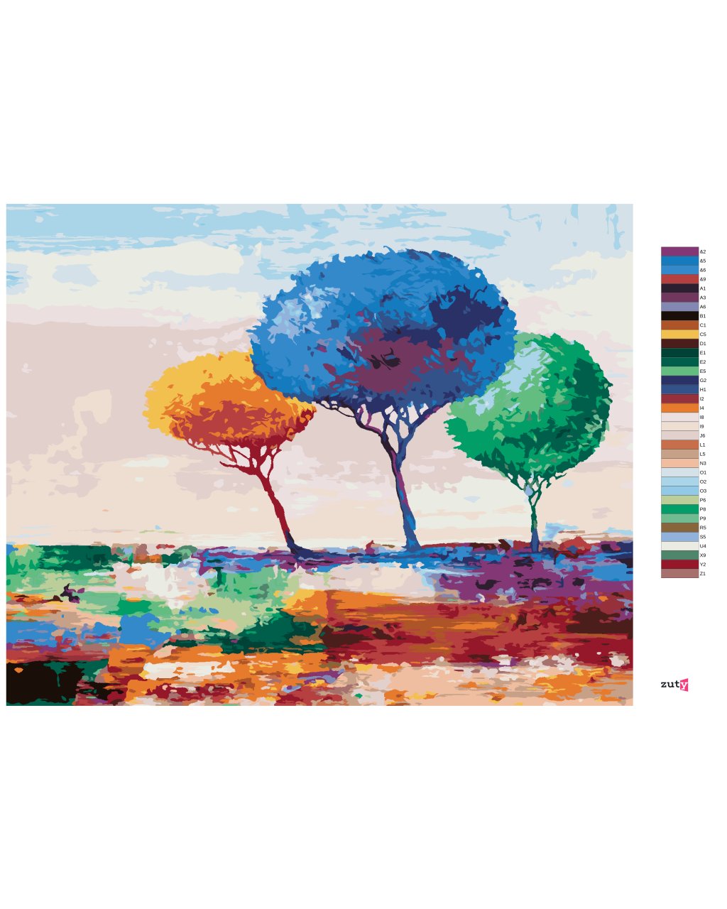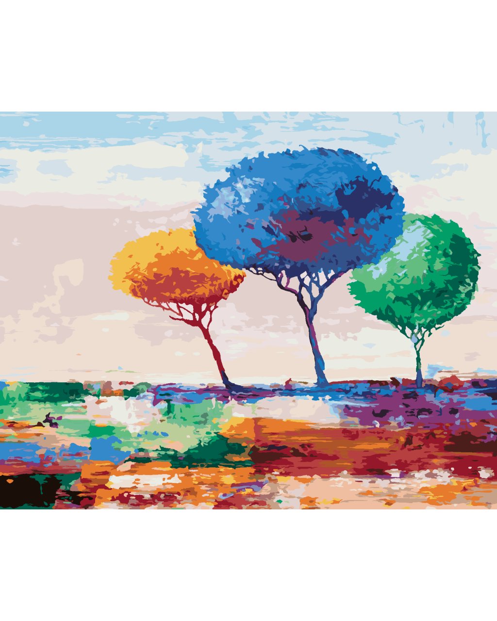 Maľovanie podľa čísel - TRI FAREBNÉ STROMY