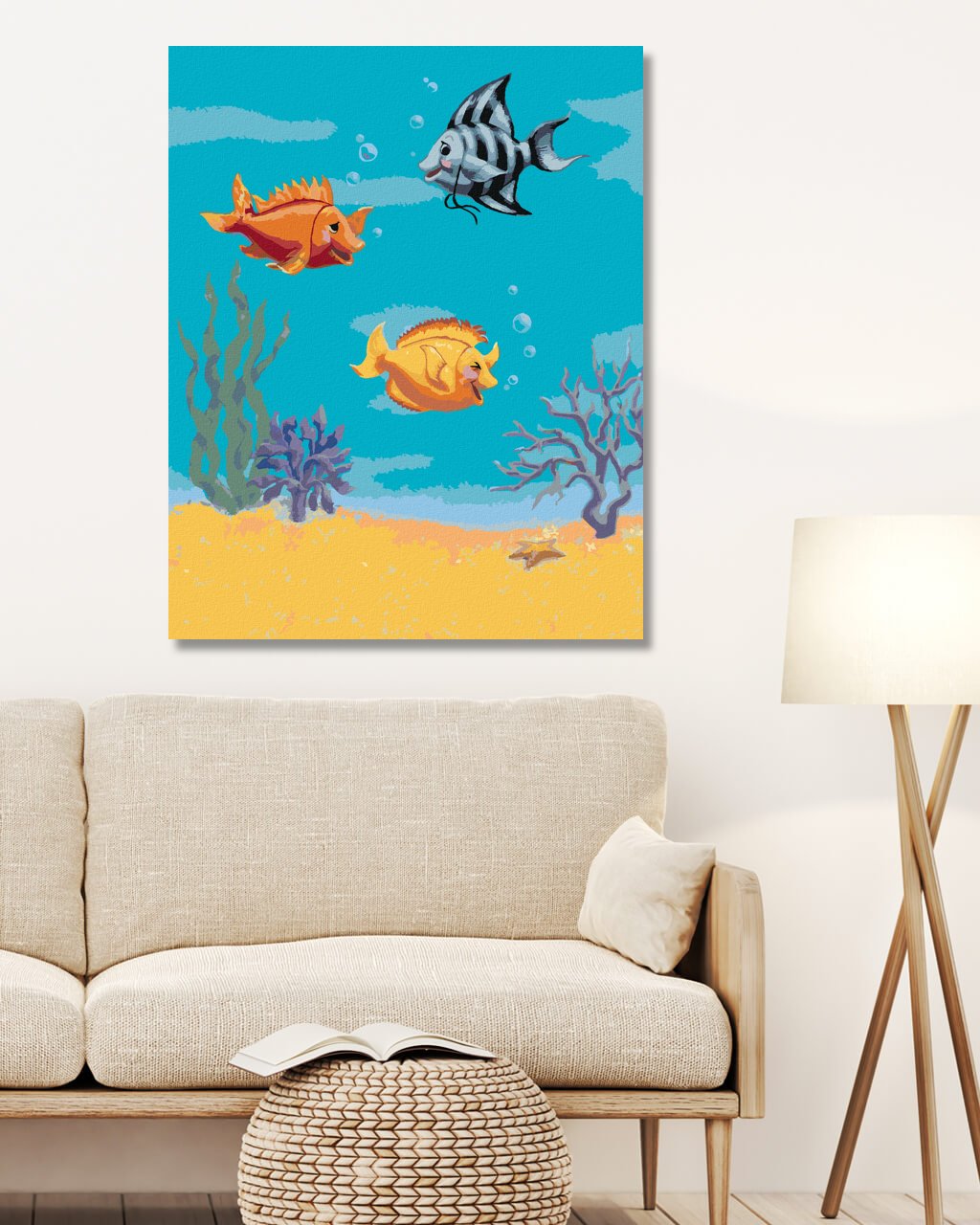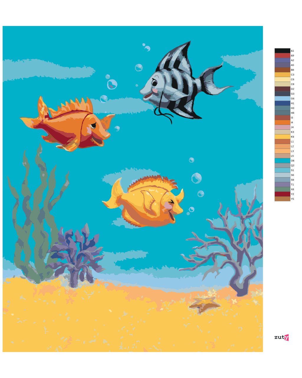 Maľovanie podľa čísel - TRI SMEJÚCE SA RYBIČKY (SUE ELLEN BROWN)