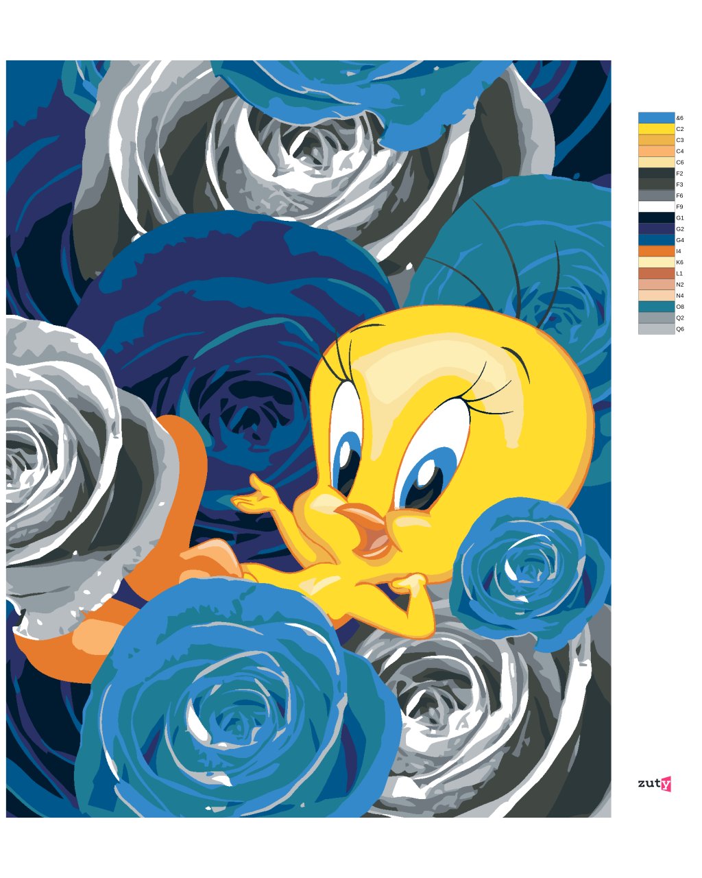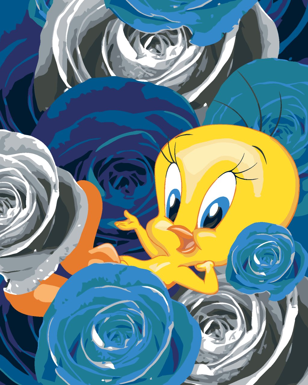 Maľovanie podľa čísel - TWEETY A RUŽA (LOONEY TUNES)