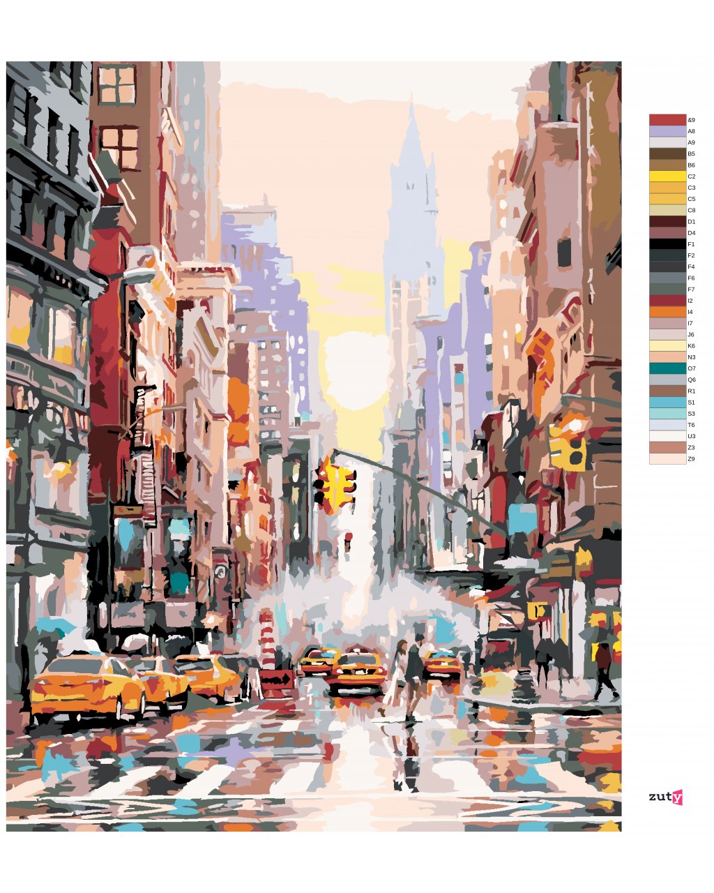 Maľovanie podľa čísel - ULICA V NEW YORKU A ŽLTÉ TAXÍKY (RICHARD MACNEIL)