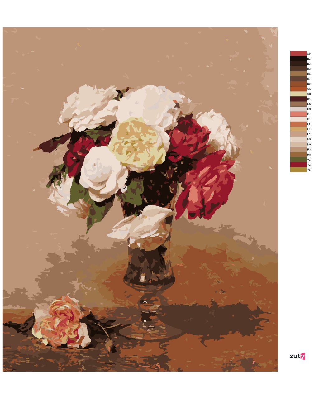 Maľovanie podľa čísel - VÁZA S RUŽAMI (HENRI FANTIN-LATOUR)