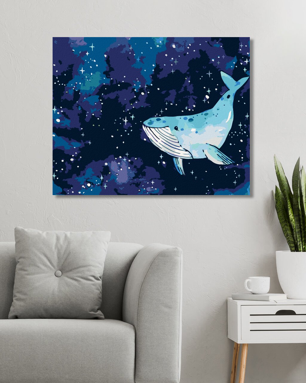 Maľovanie podľa čísel - VEĽRYBA PLÁVA PO NOČNEJ OBLOHE