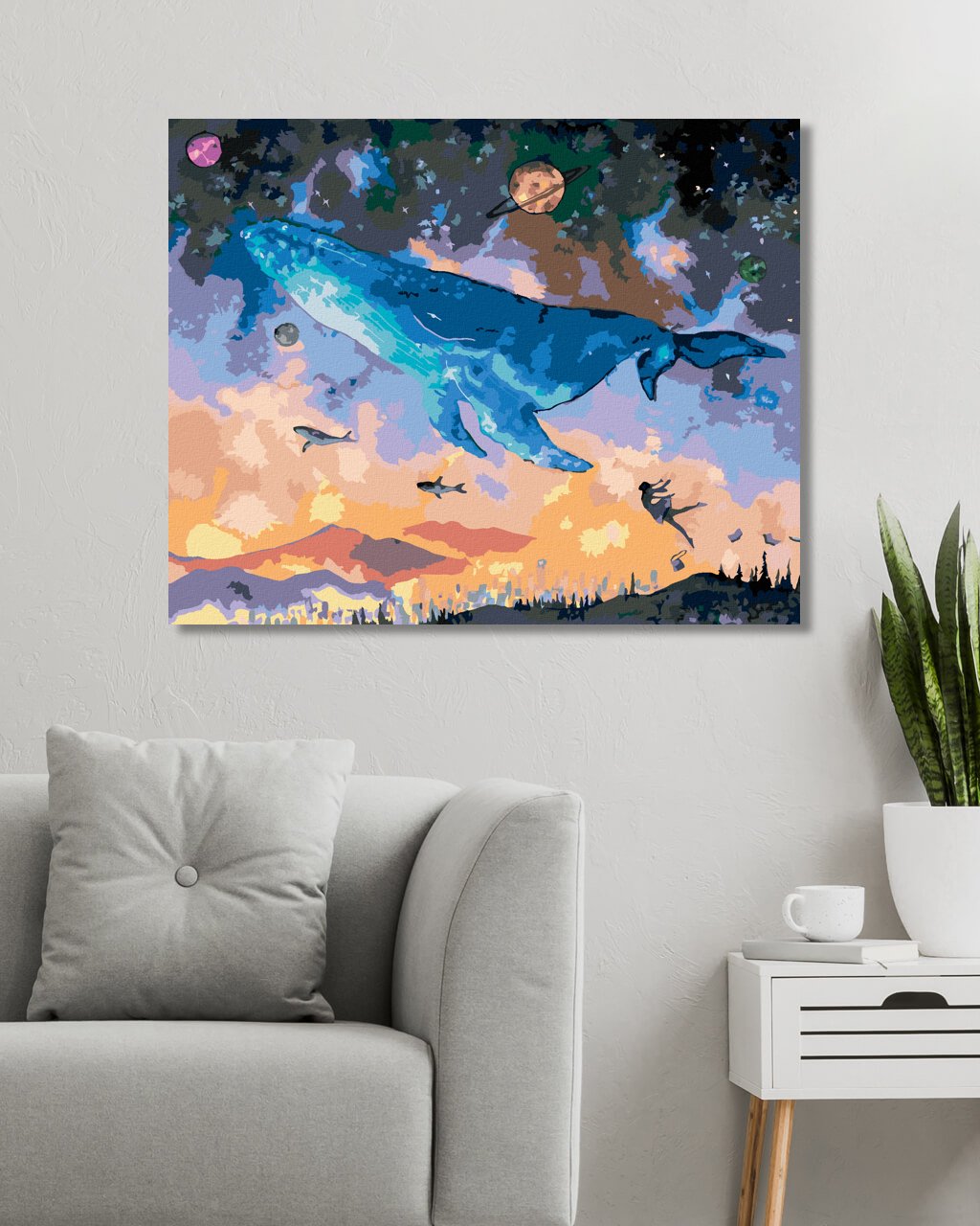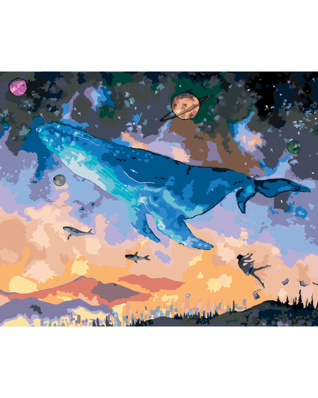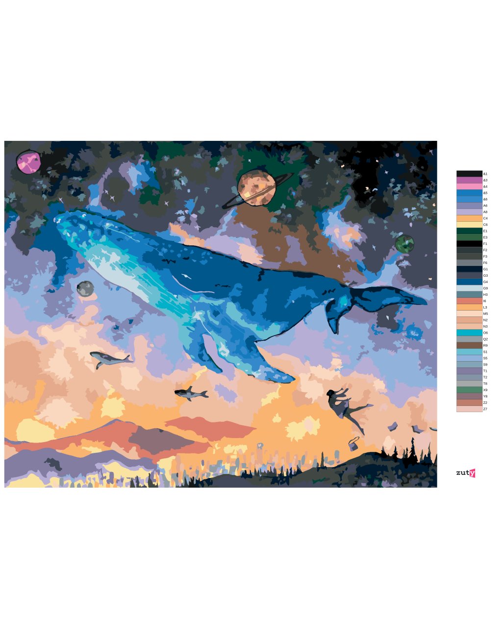 Maľovanie podľa čísel - VEĽRYBA POTÁPAJÚCA SA DO FANTASY VESMÍRU