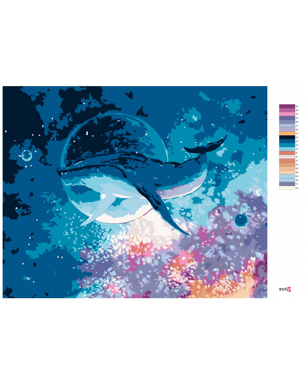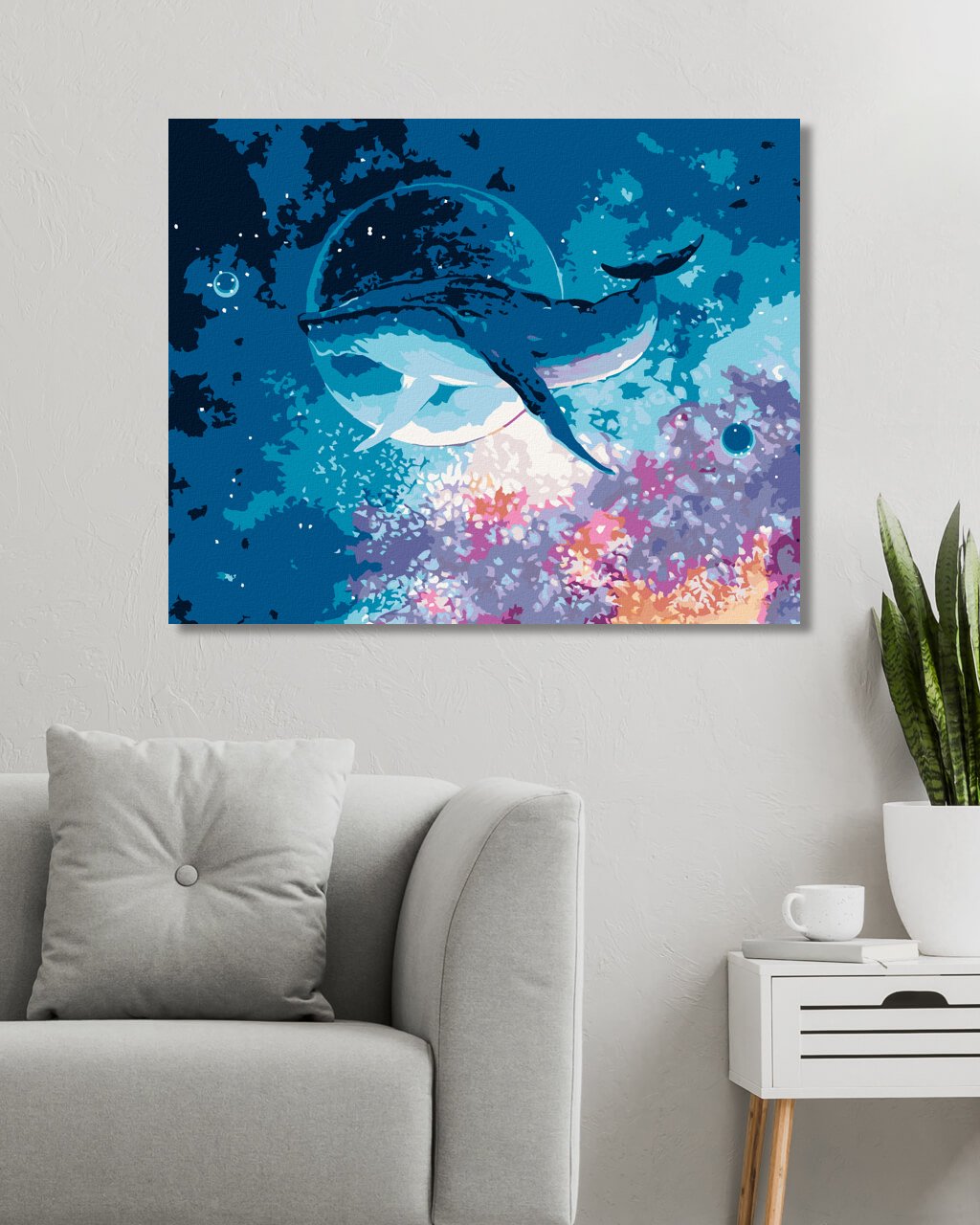 Maľovanie podľa čísel - VEĽRYBA POTÁPAJÚCA SA VO VESMÍRE