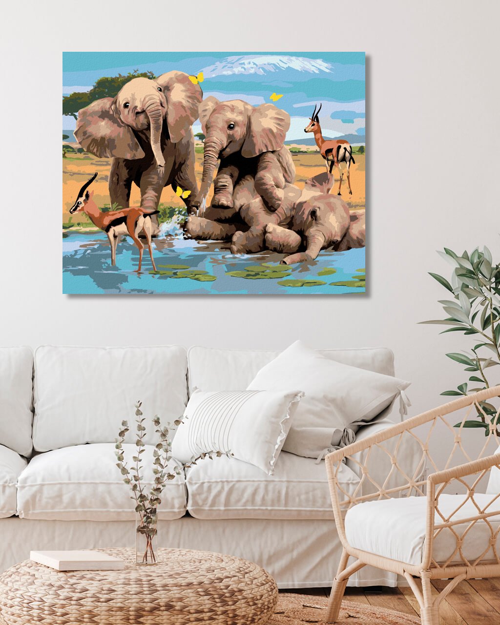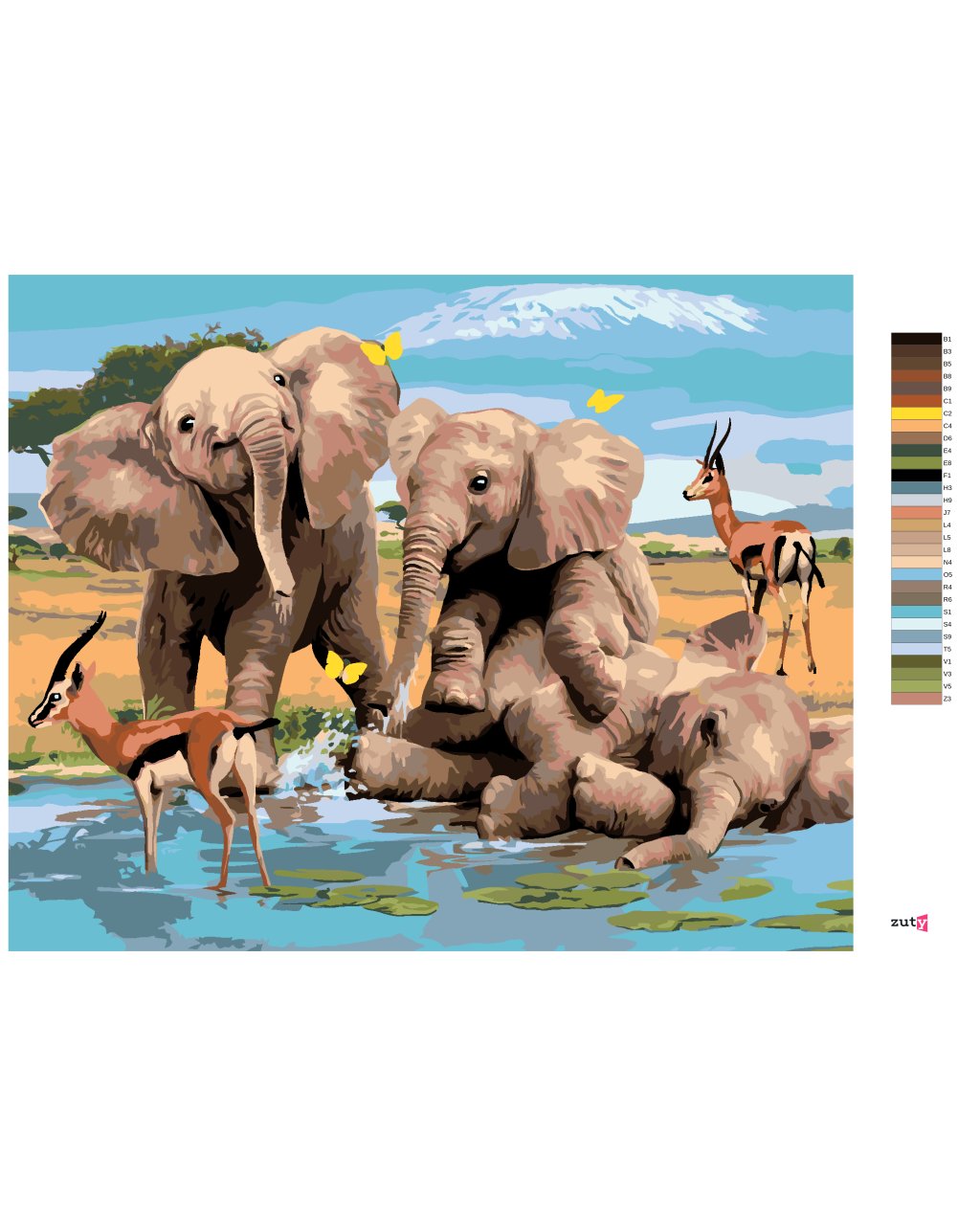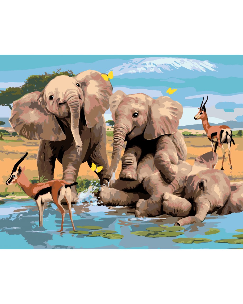 Maľovanie podľa čísel - VESELÉ SLONY A GAZELY PRI VODE (HOWARD ROBINSON)