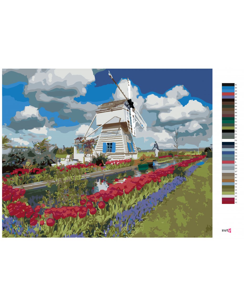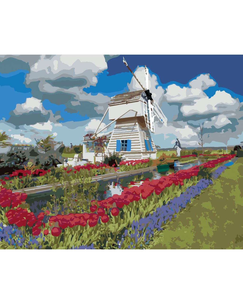 Maľovanie podľa čísel - VETERNÝ MLYN A TULIPÁNY (DENNIS FRATES)