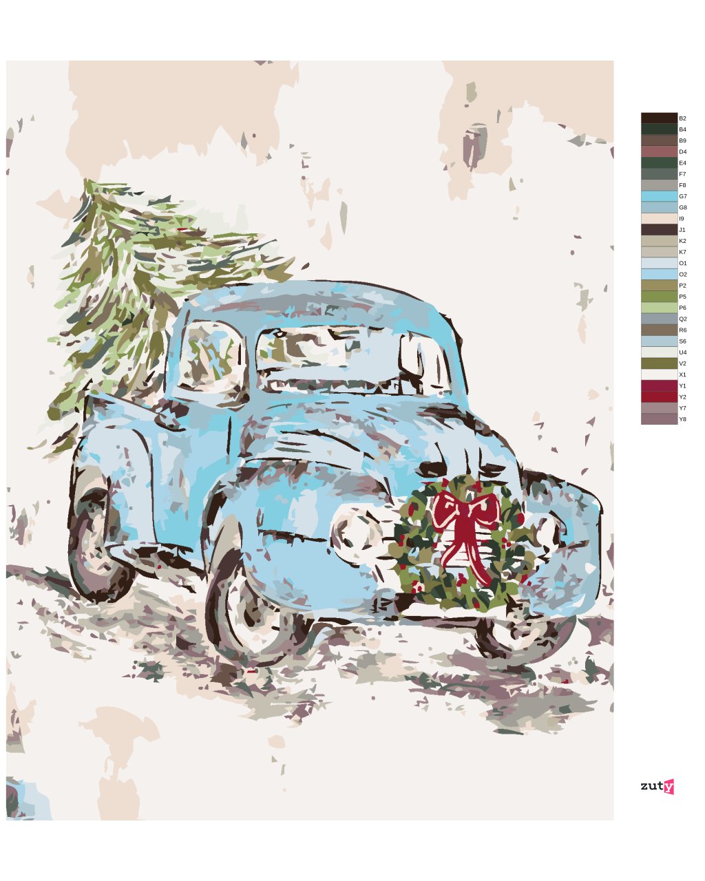 Maľovanie podľa čísel - VIANOČNÉ AUTO (HALEY BUSH)