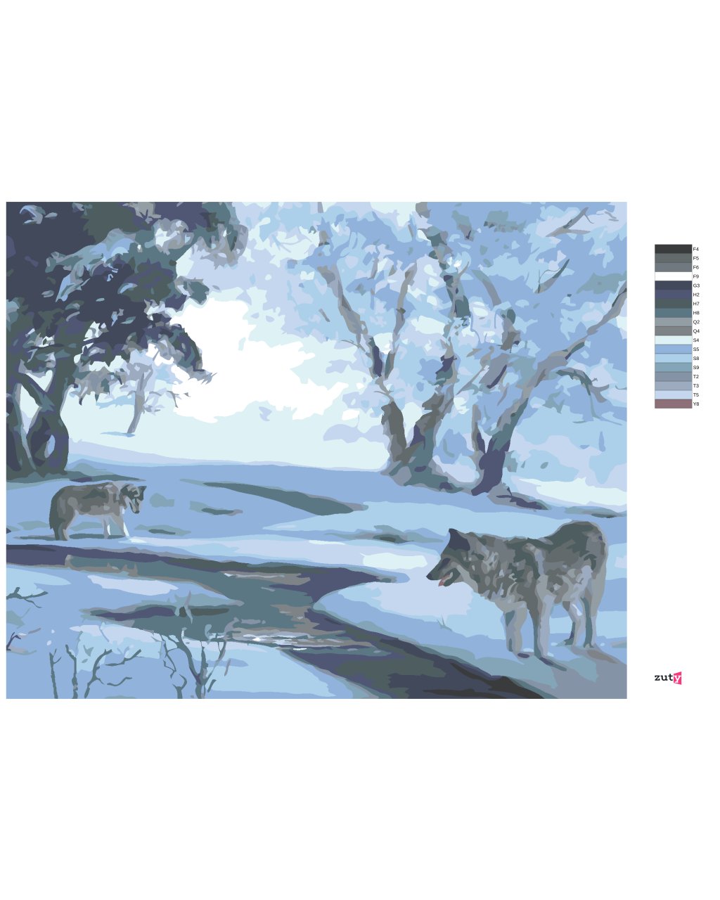 Maľovanie podľa čísel - VLCI PRI RIKE V ZIME (D. RUSTY RUST)