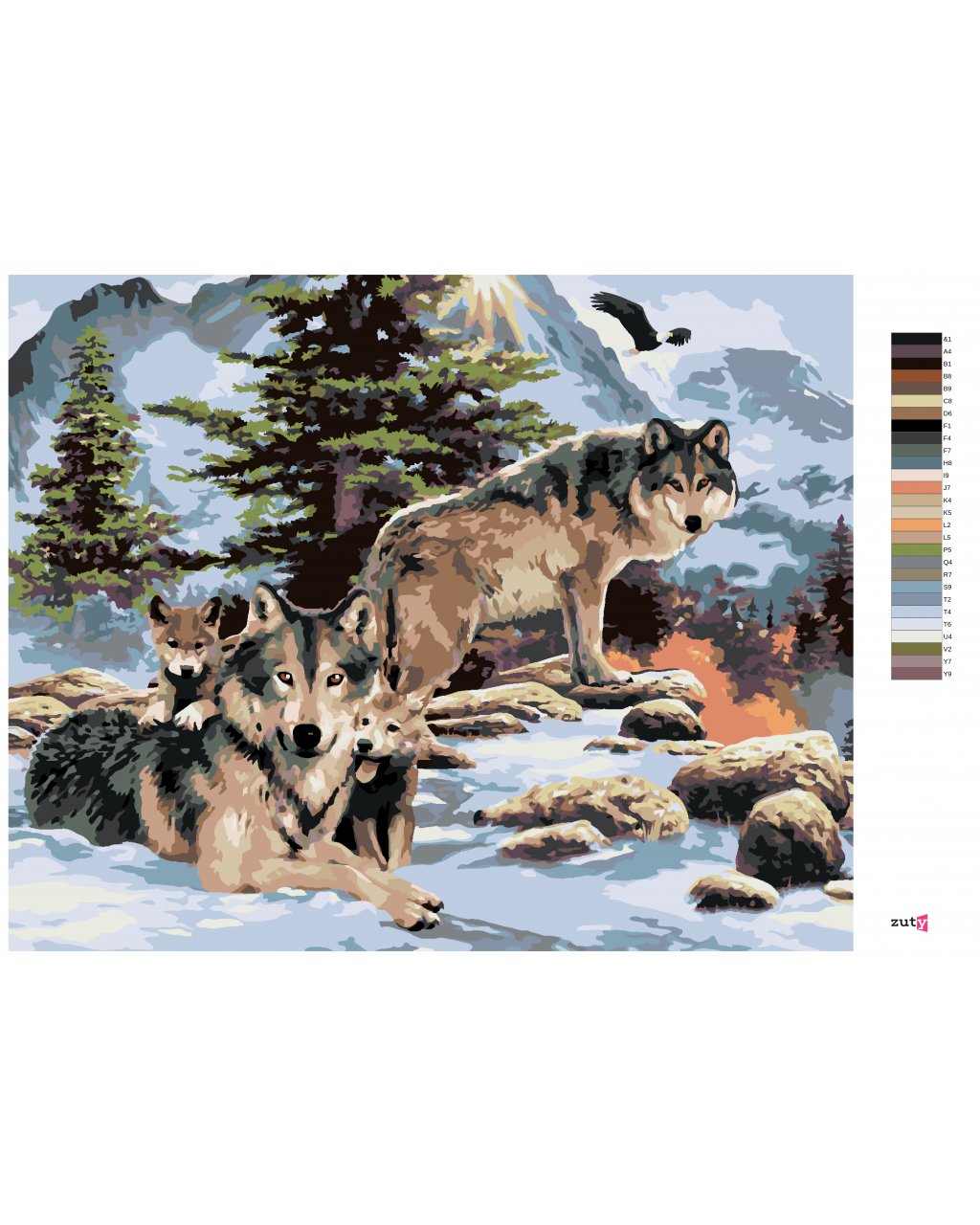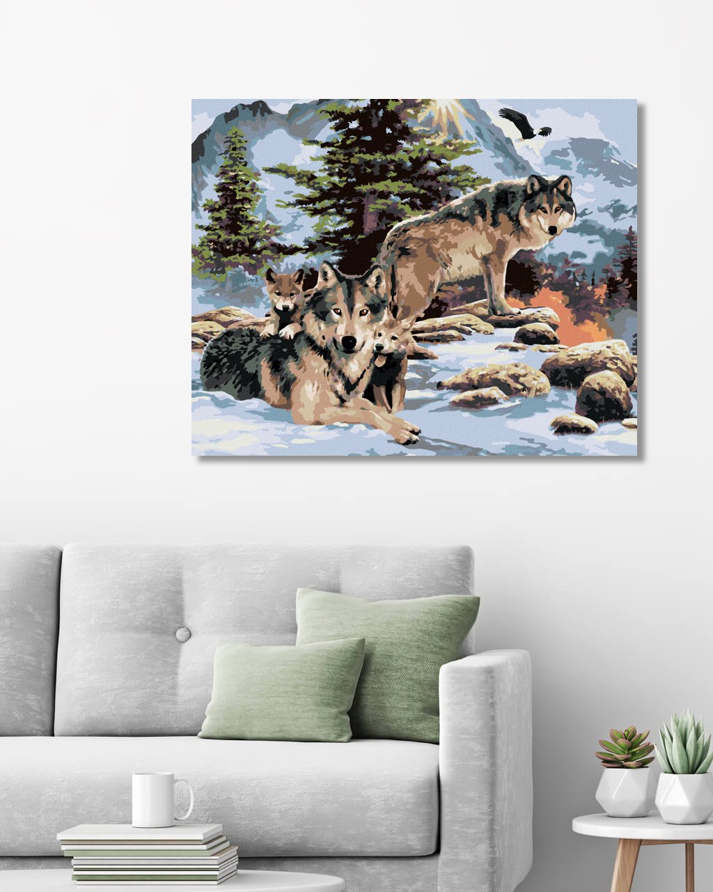 Maľovanie podľa čísel - VLČIA SMEČKA V HORÁCH (HOWARD ROBINSON)