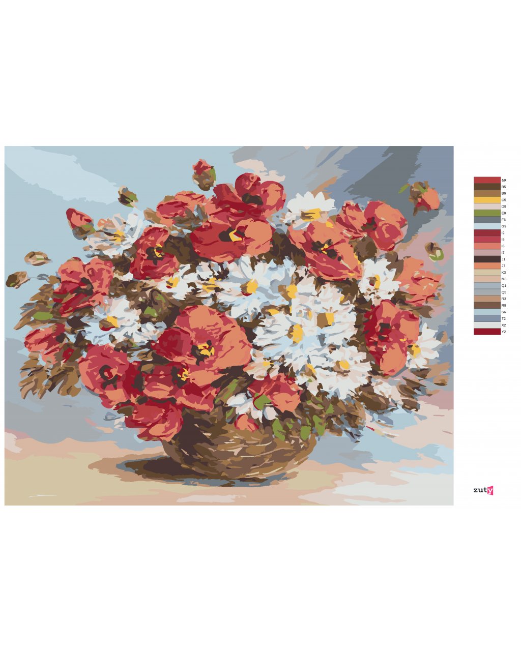 Maľovanie podľa čísel - VLČIE MAKY A MARGARÉTY VO VÁZE