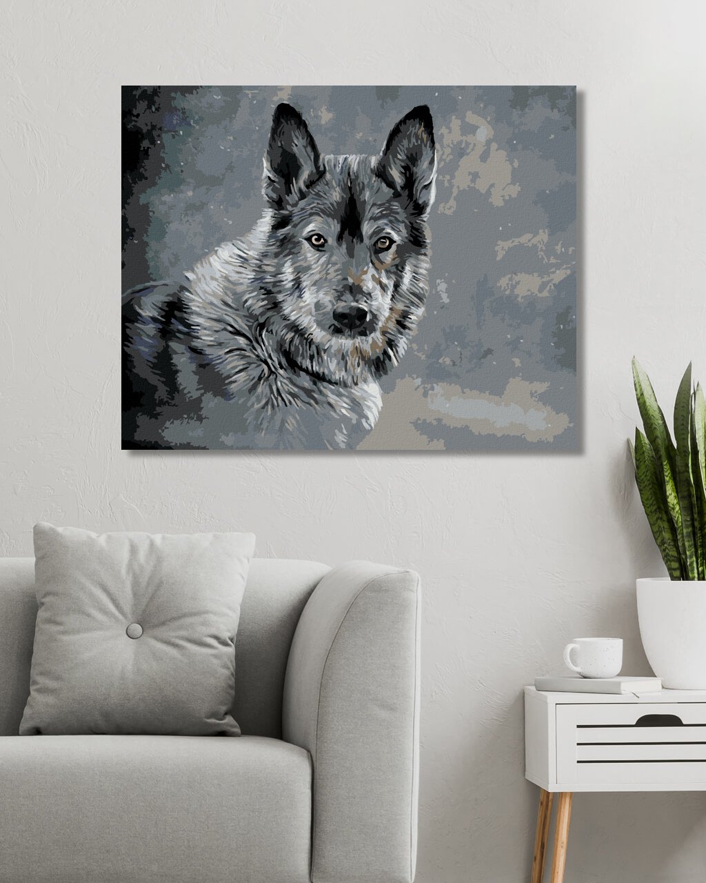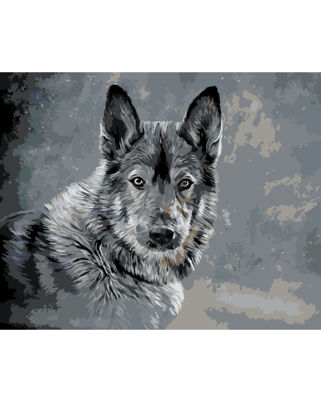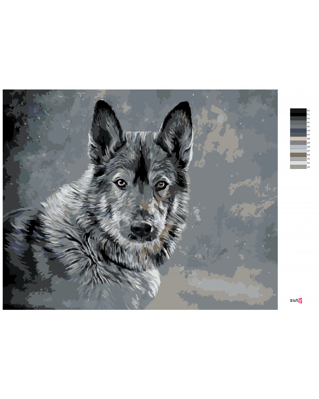 Maľovanie podľa čísel - VLK NA SIVOM POZADÍ
