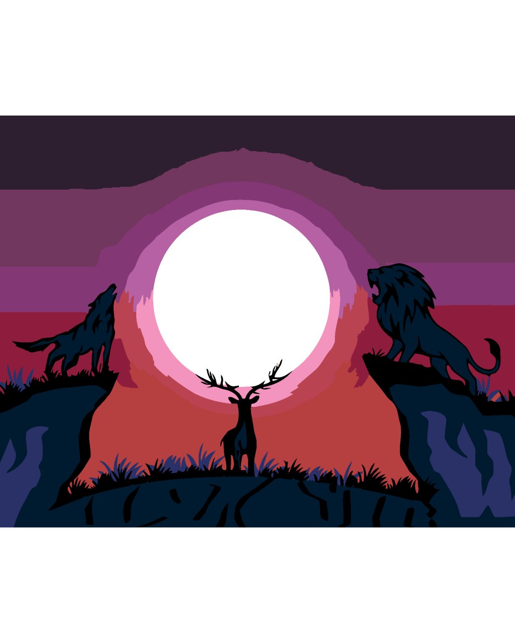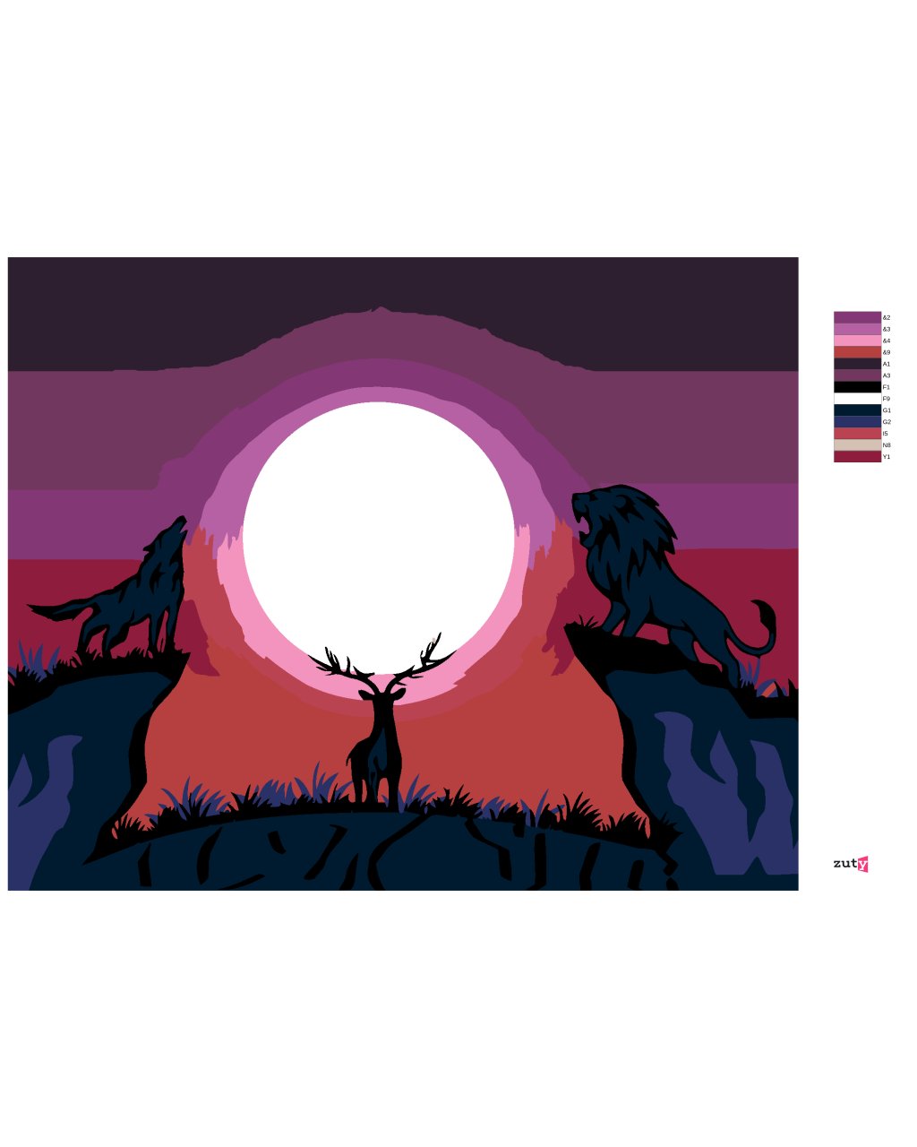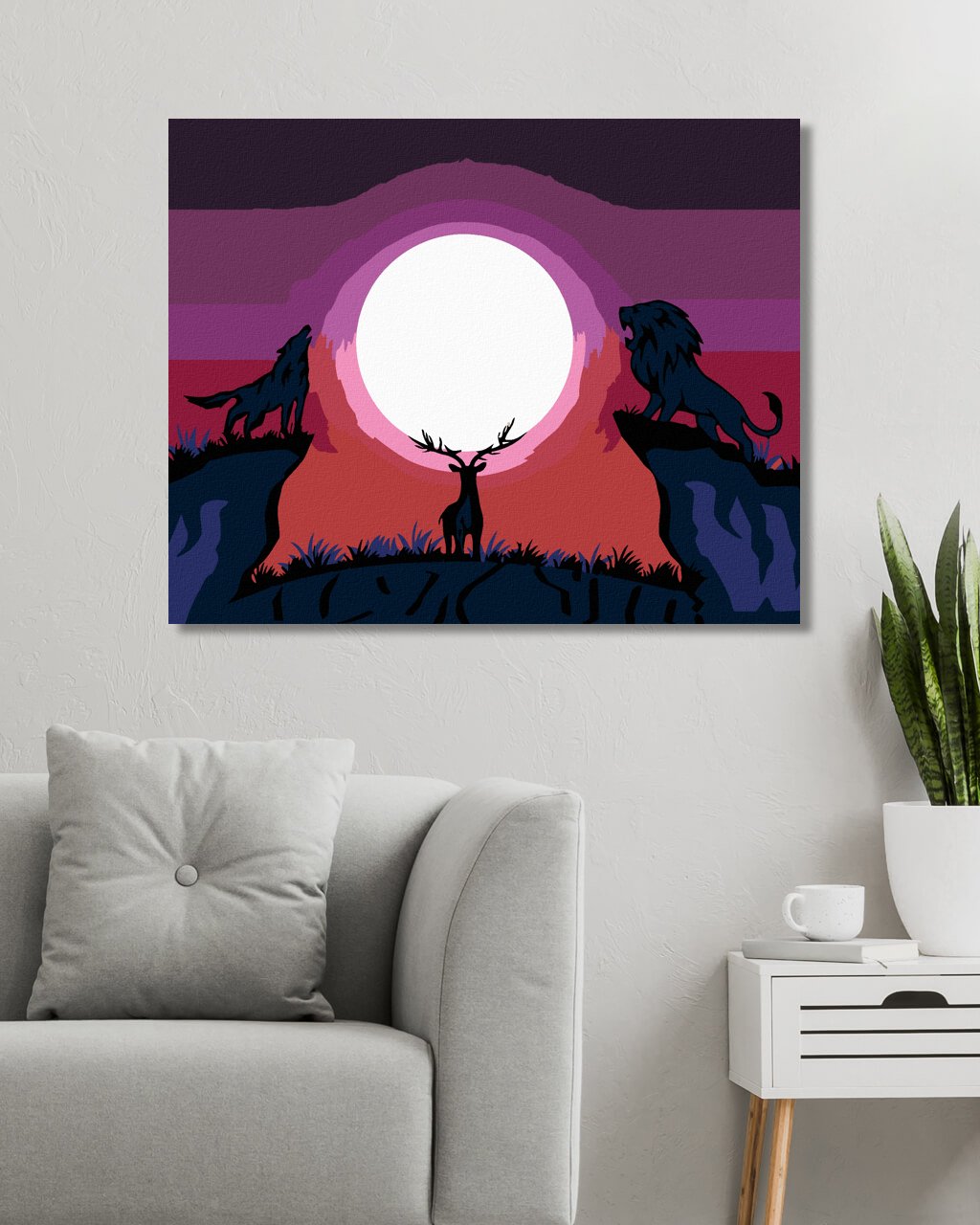 Maľovanie podľa čísel - VLK S LEVOM DÍVAJÚCI SA NA JELEŇA