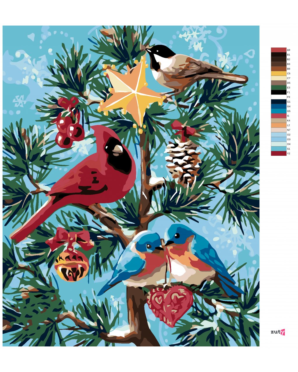 Maľovanie podľa čísel - VTÁČIKY A VIANOČNÝ STROMČEK