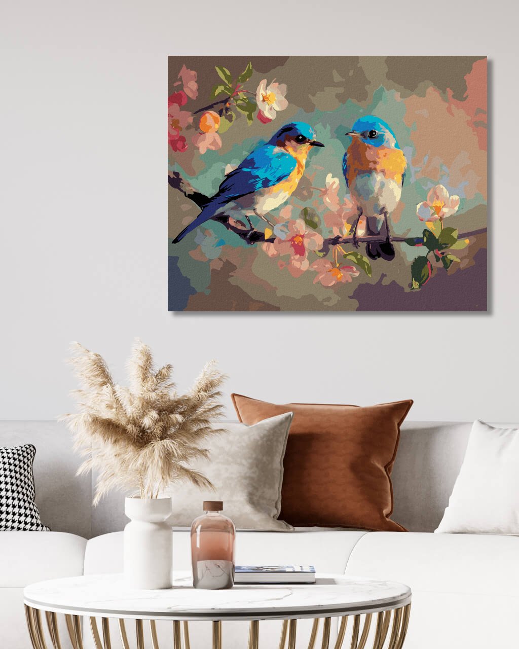 Maľovanie podľa čísel - VTÁK SALAŠNÍK NA ROZKVITNUTOM KONÁRI