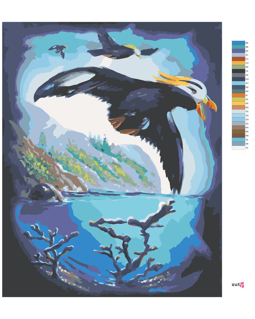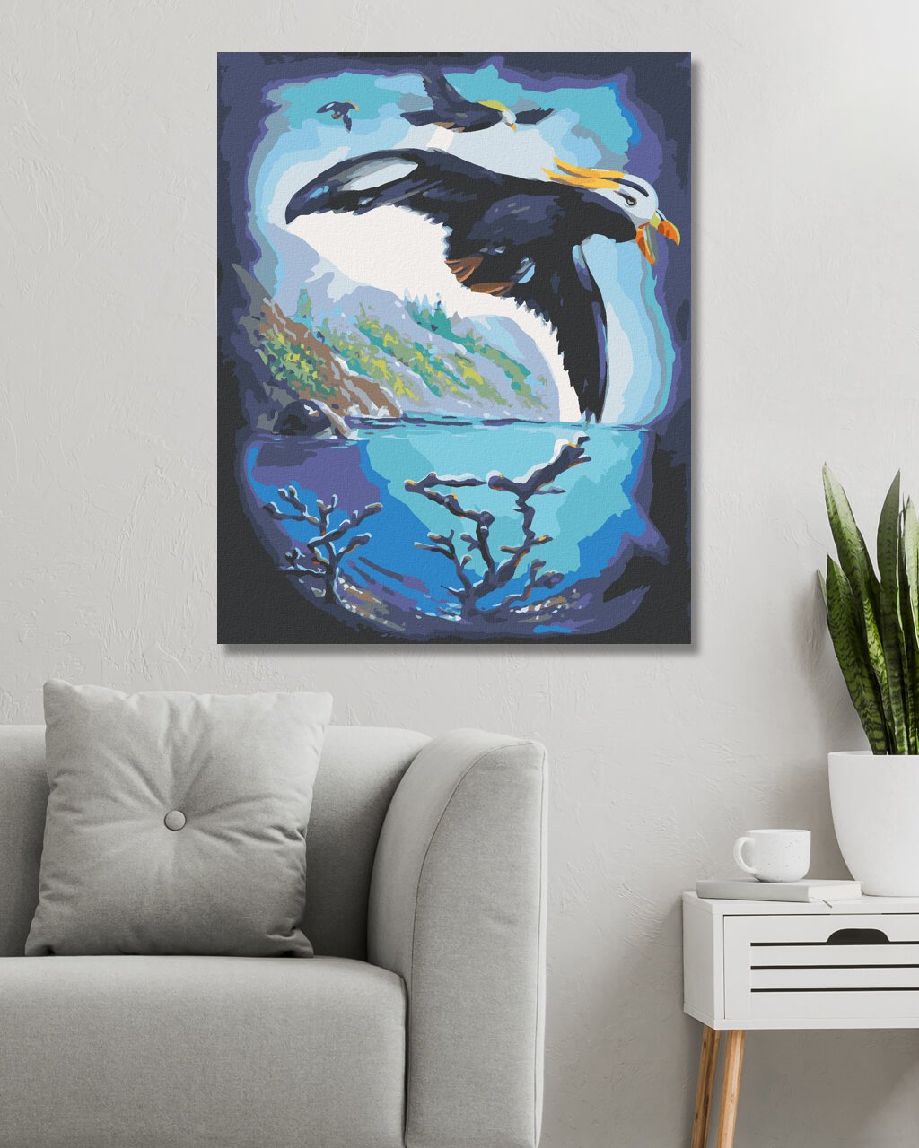 Maľovanie podľa čísel - VTÁK V LETE A KORALY V MORI (D. RUSTY RUST)