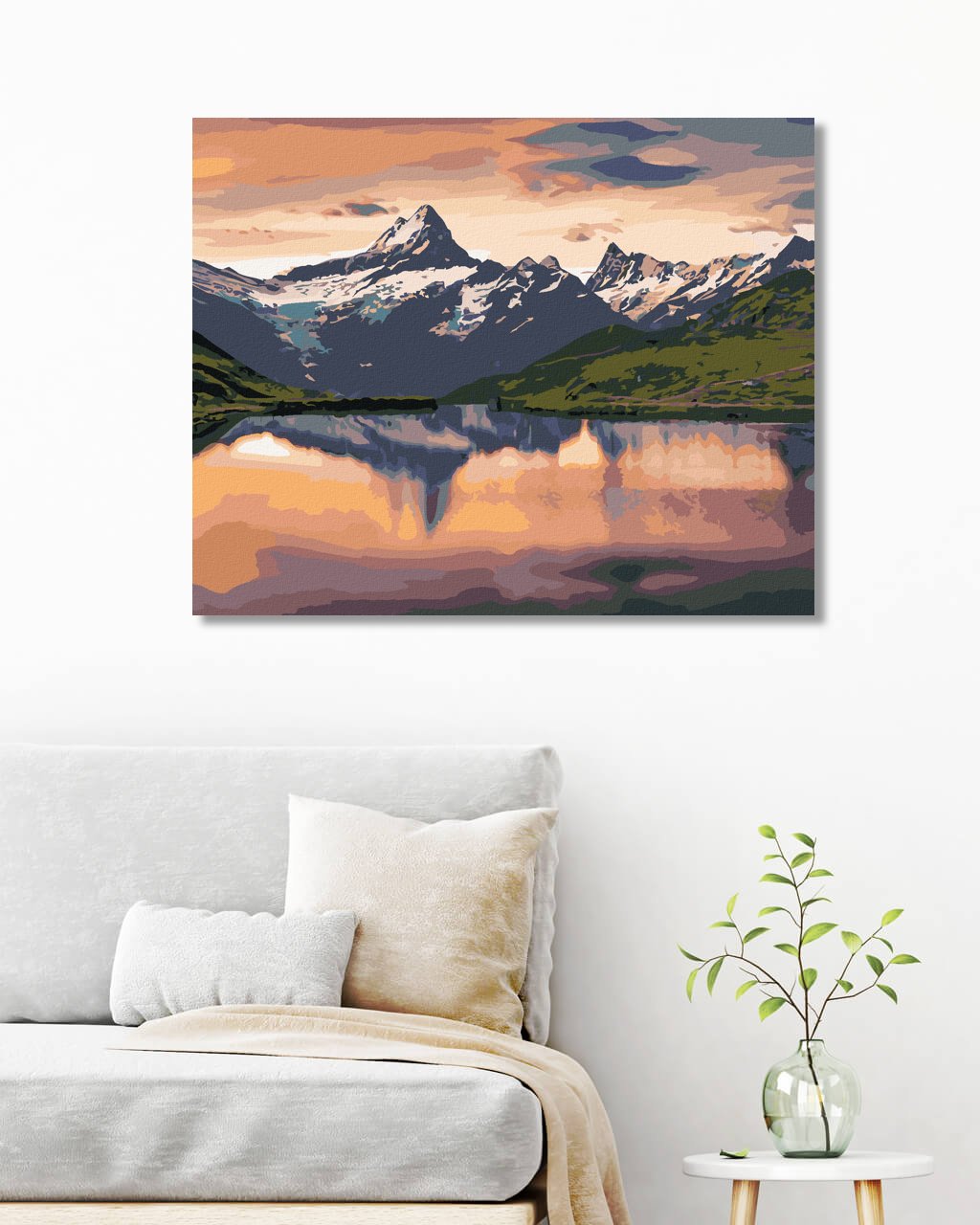 Maľovanie podľa čísel - VÝCHOD SLNKA NA JAZERE BACHALPSEE
