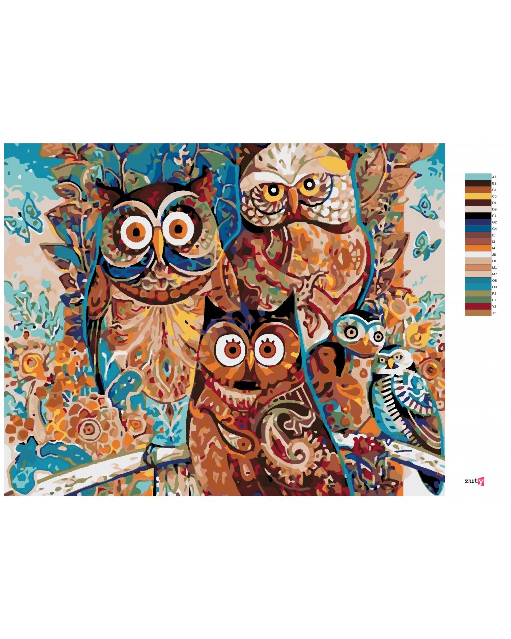 Maľovanie podľa čísel - VZOROVANÉ SOVY