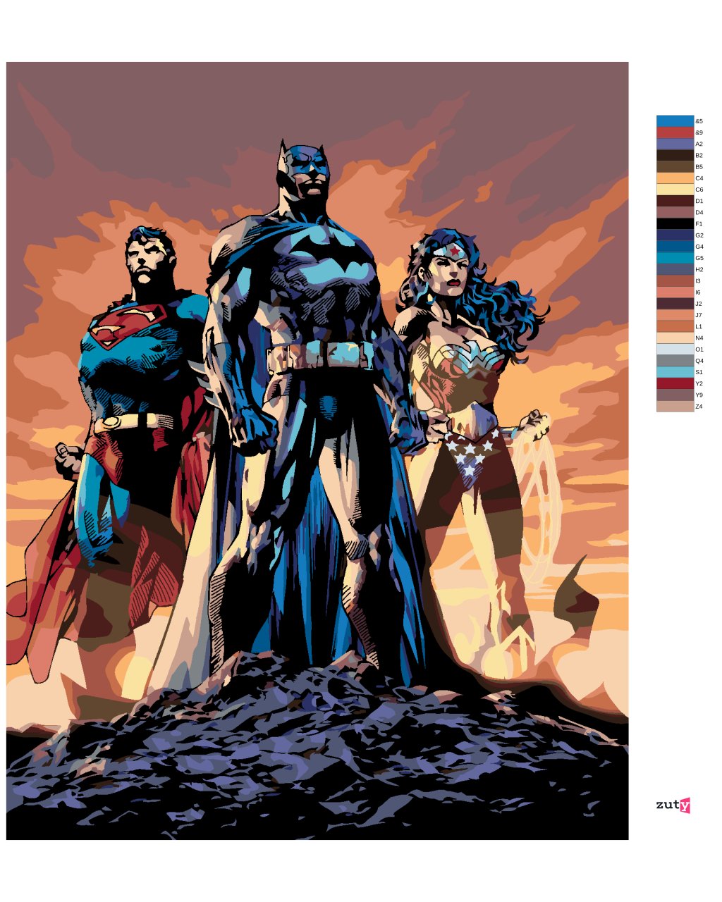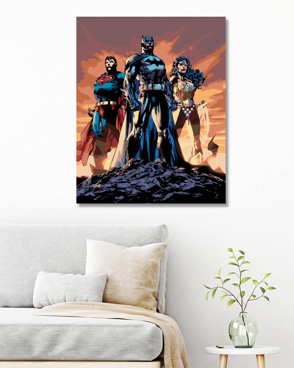 Maľovanie podľa čísel - WONDER WOMAN, BATMAN A SUPERMAN