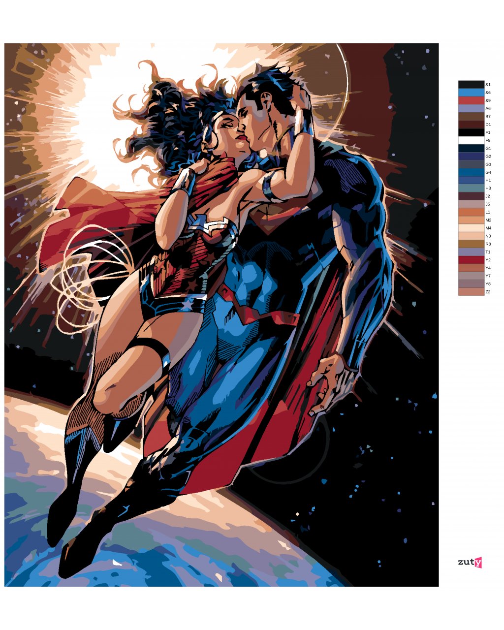 Maľovanie podľa čísel - WONDER WOMAN A SUPERMAN LETÍ