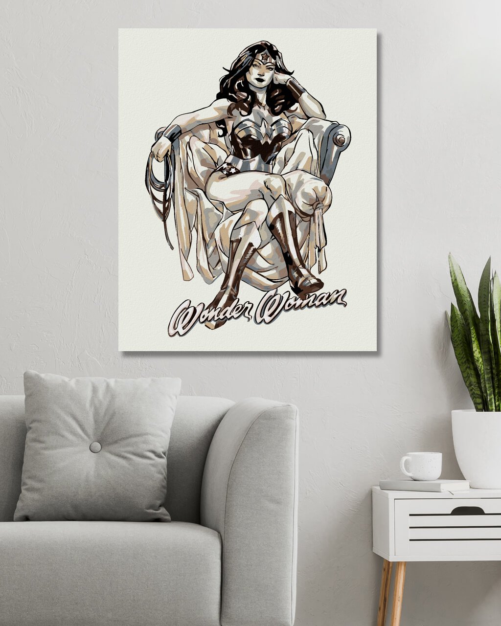 Maľovanie podľa čísel - WONDER WOMAN ČIERNOBIELY PLAGÁT
