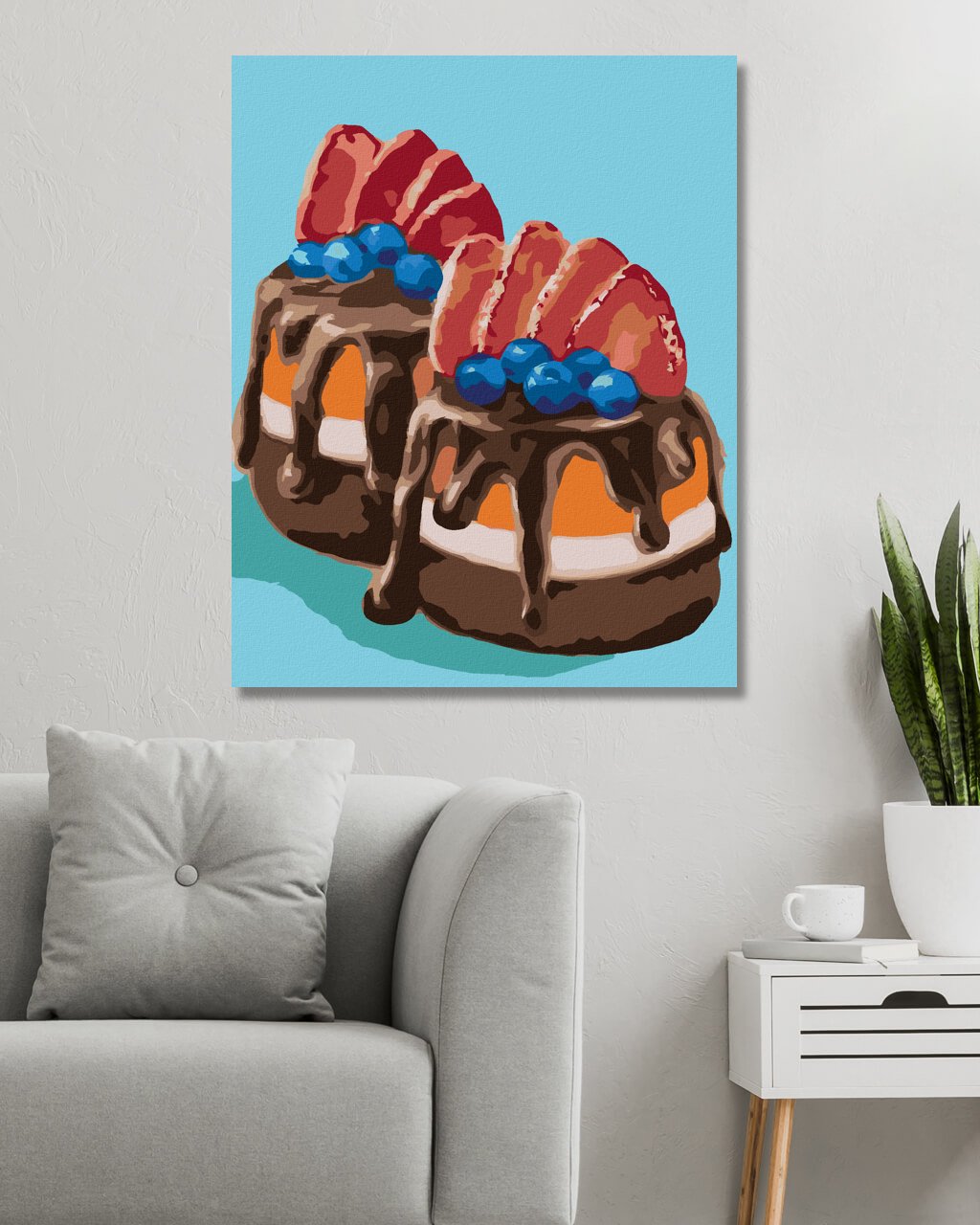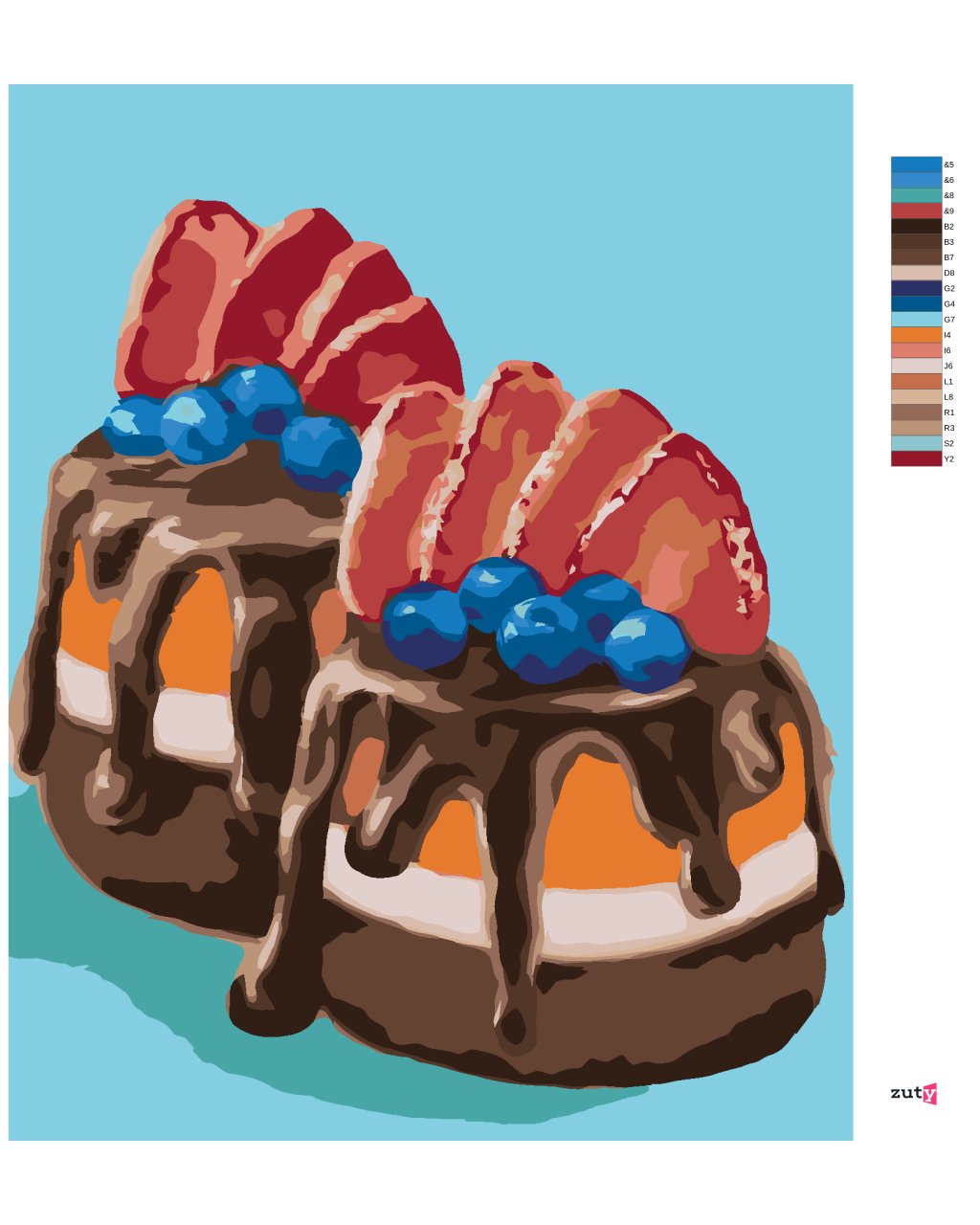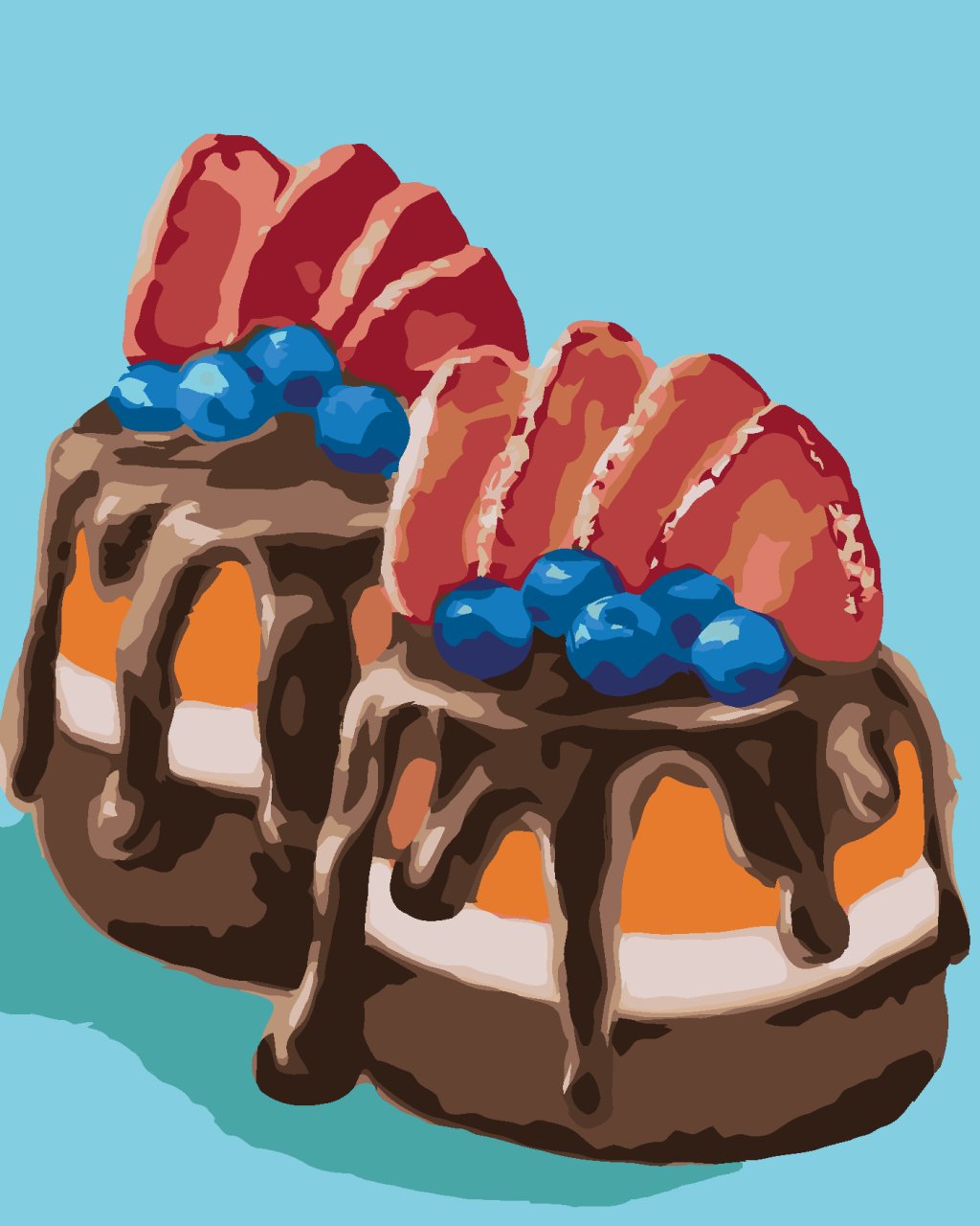 Maľovanie podľa čísel - ZÁKUSOK S ČOKOLÁDOU A JAHODAMI (MYROSLAVA VOLOSCHUK)