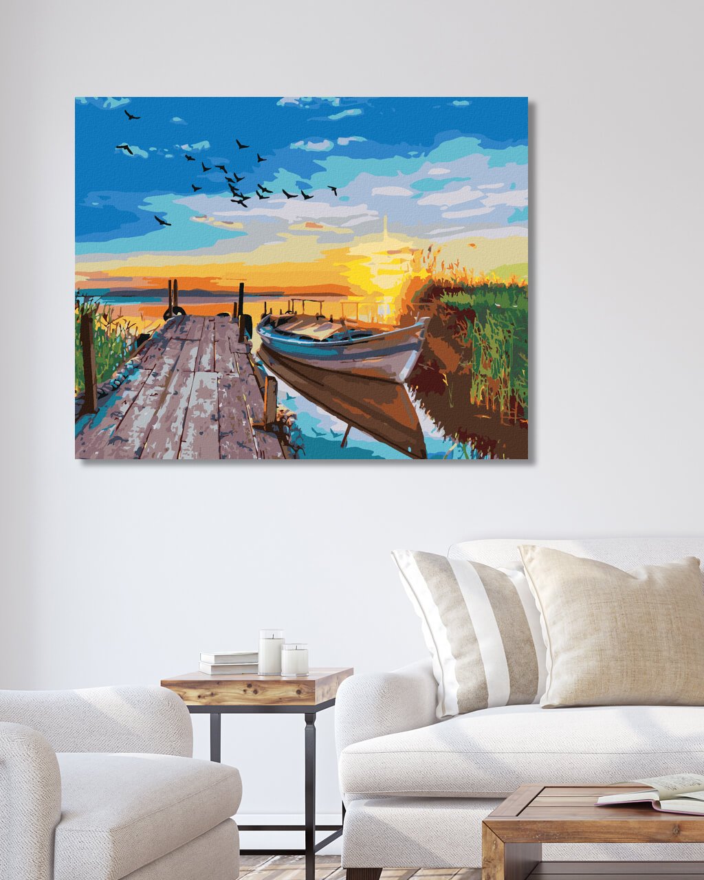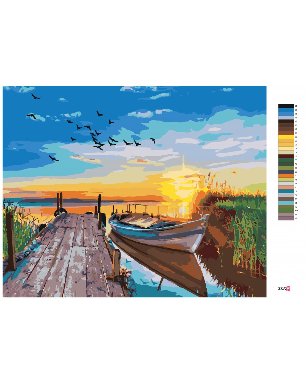 Maľovanie podľa čísel - ZÁPAD SLNKA NAD JAZEROM S LOĎKOU