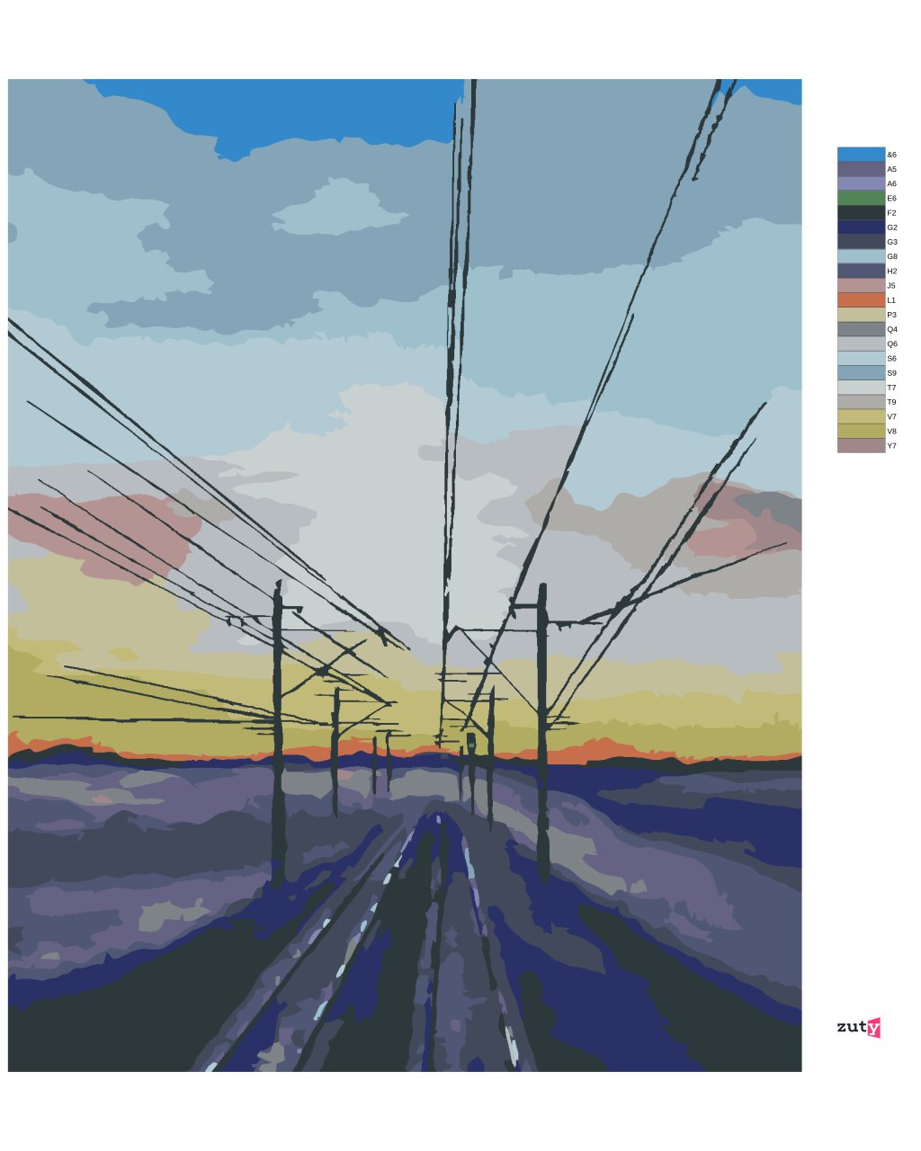 Maľovanie podľa čísel - ZAPADAJÚCE SLNKO NAD VLAKOVÝMI KOĽAJAMI