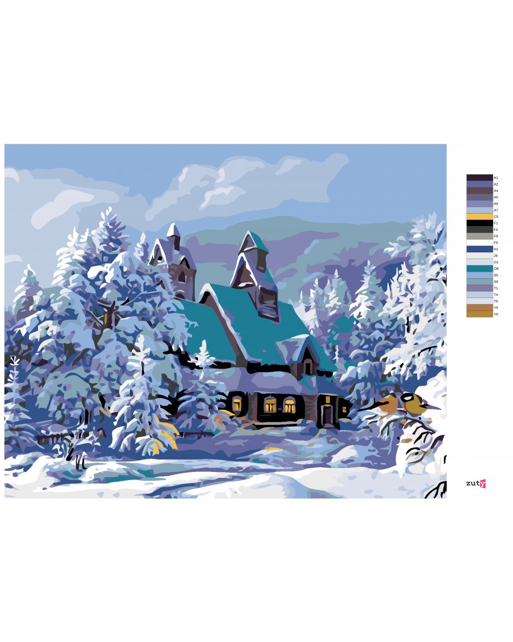 Maľovanie podľa čísel - ZASNEŽENÝ DOM