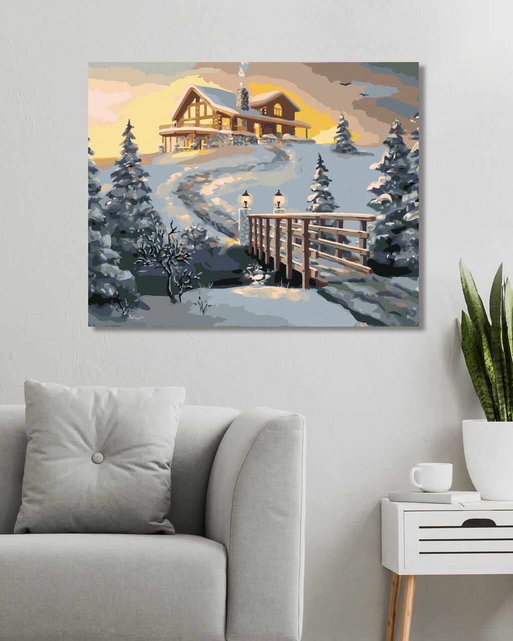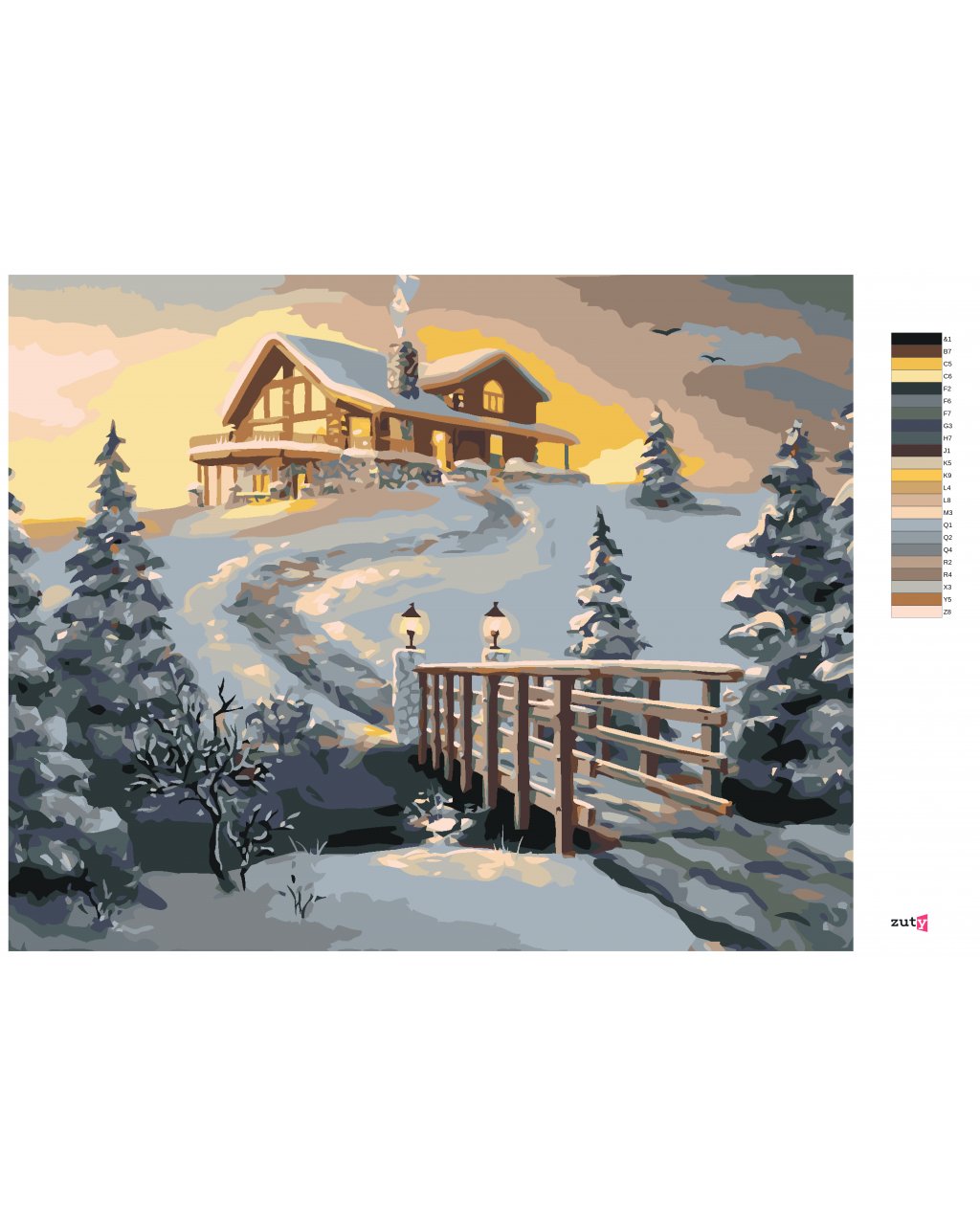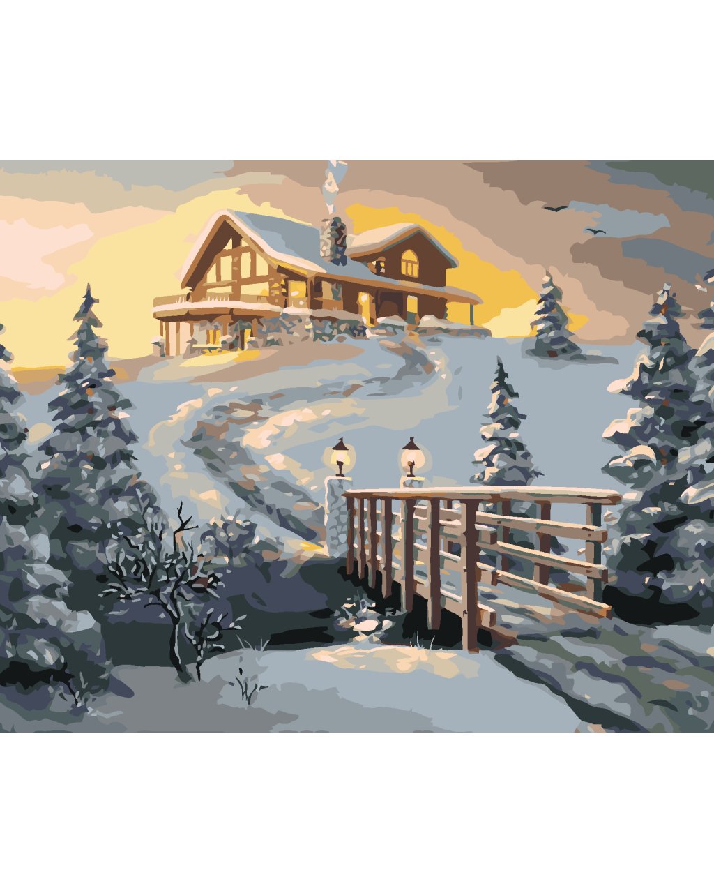 Maľovanie podľa čísel - ZASNEŽENÝ ZRUB PRI VÝCHODE SLNKA (D. RUSTY RUST)