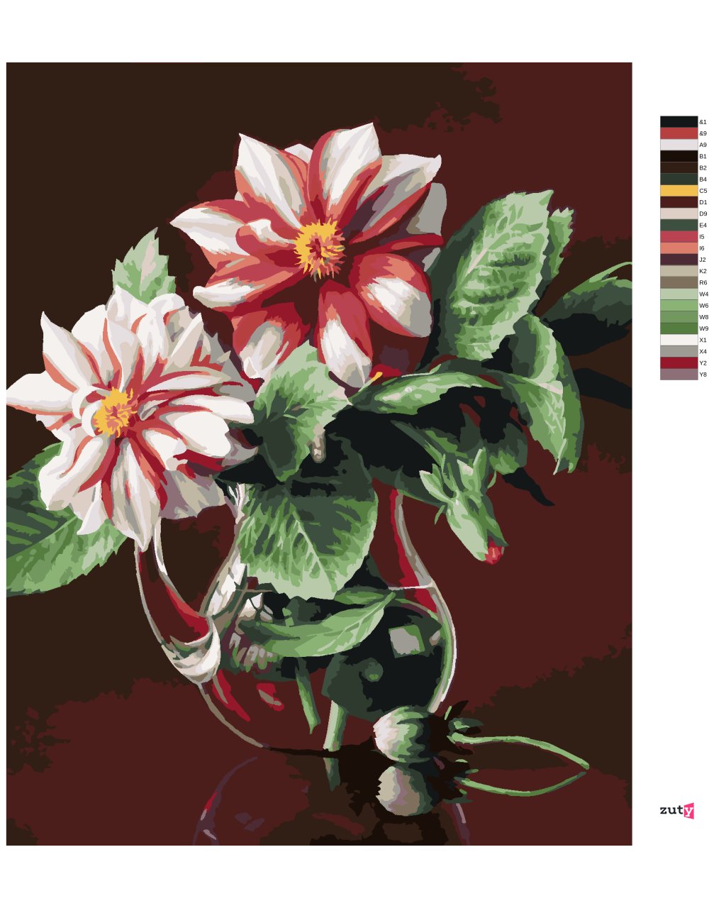 Maľovanie podľa čísel - ZÁTIŠIE GEORGÍNY V SKLENENEJ KANVICI (PIETER WAGEMANS)
